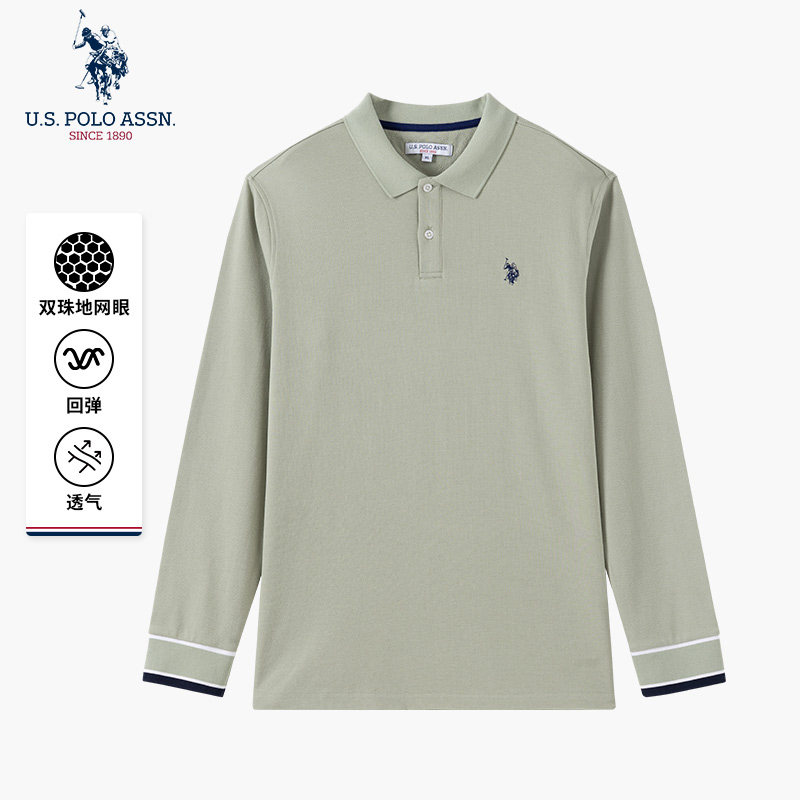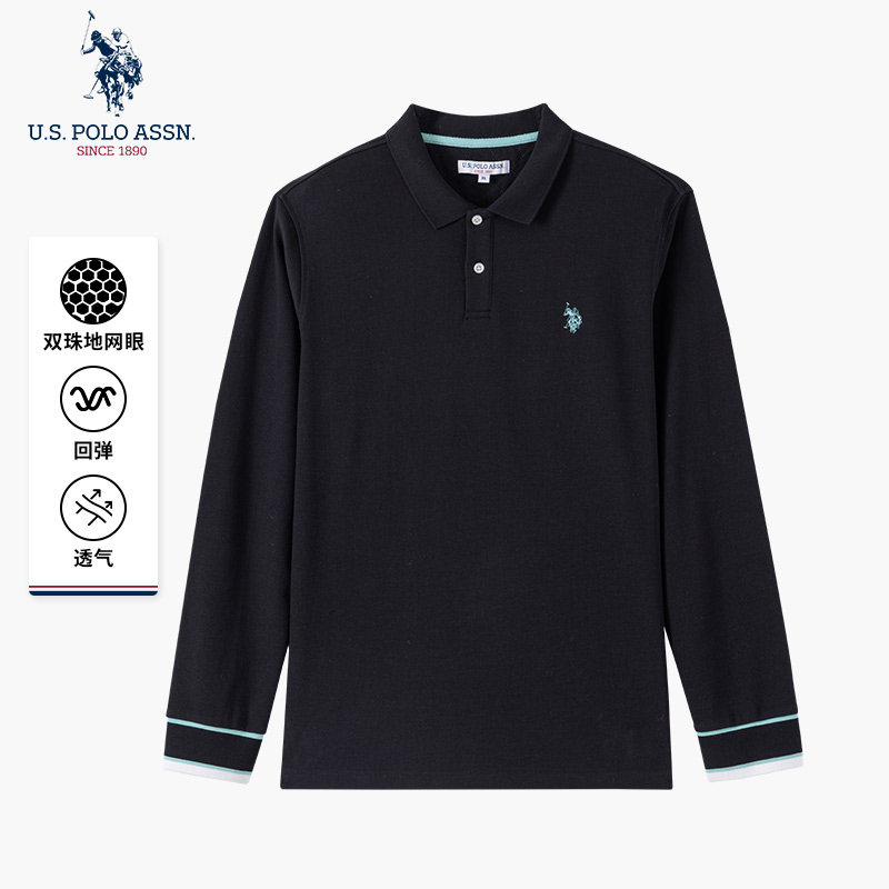 U.S. POLO ASSN.男士长袖POLO衫纯棉商务休闲翻领T恤男款宽松上衣