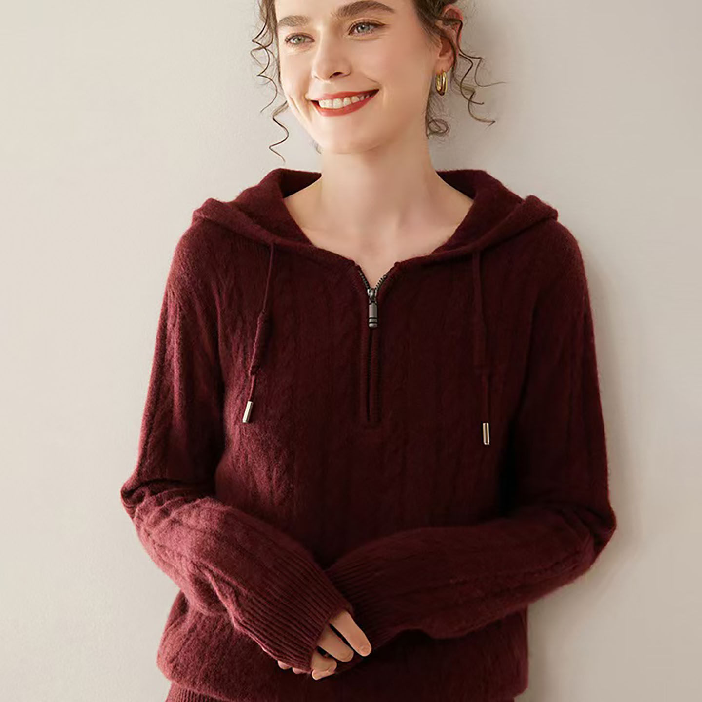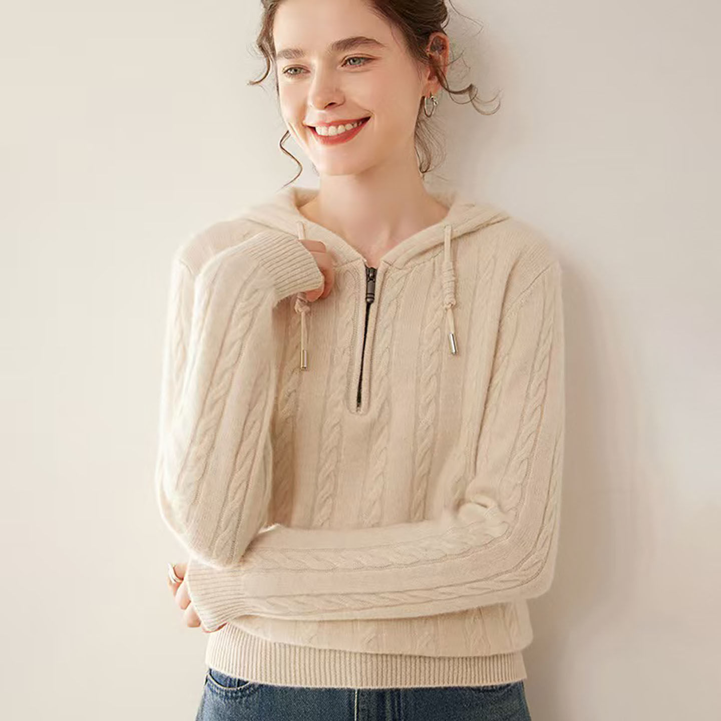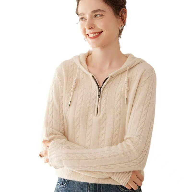 26早春重磅加厚100纯山羊绒衫卫衣女款2026新款春外套宽松连帽衫