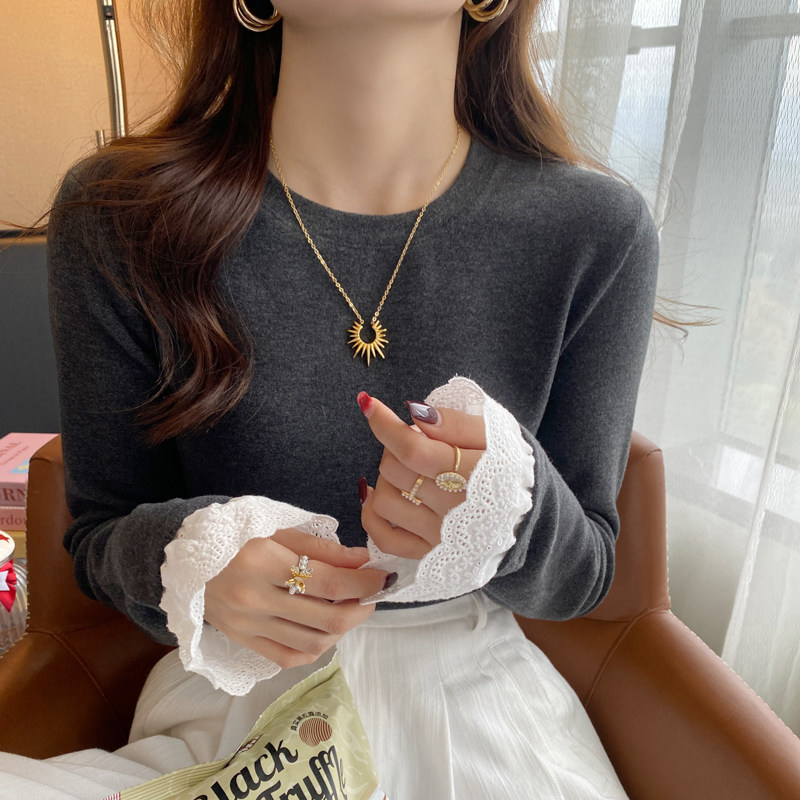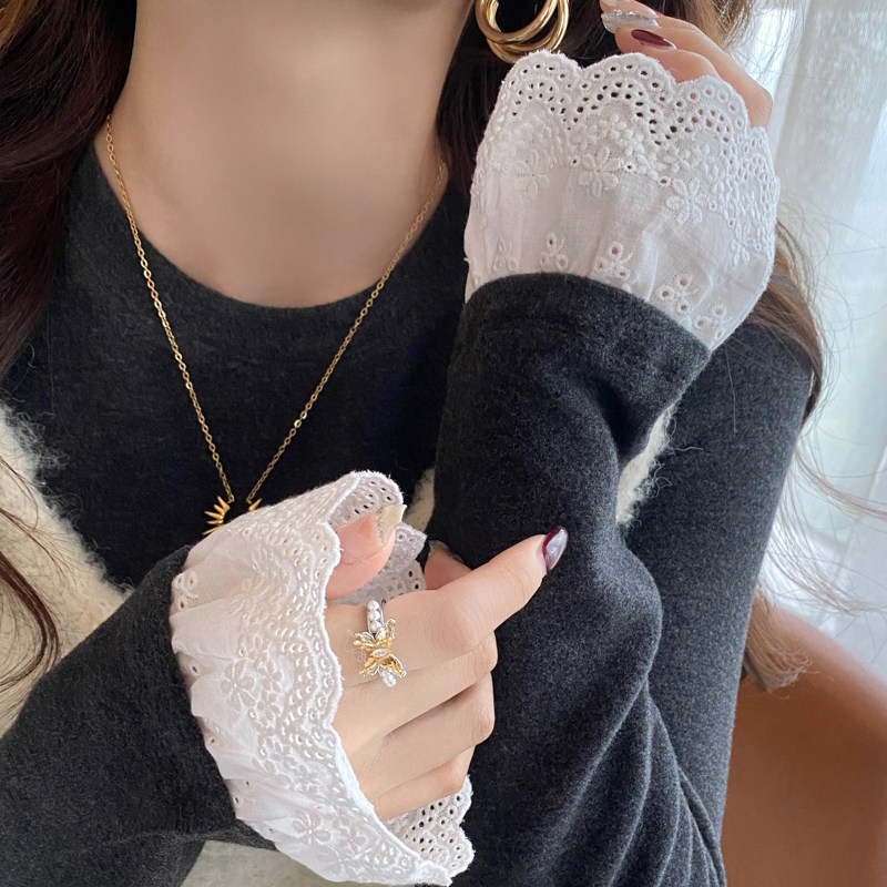 白色蕾丝花边加绒打底衫女春季2026新款内搭可外穿设计感加厚上衣