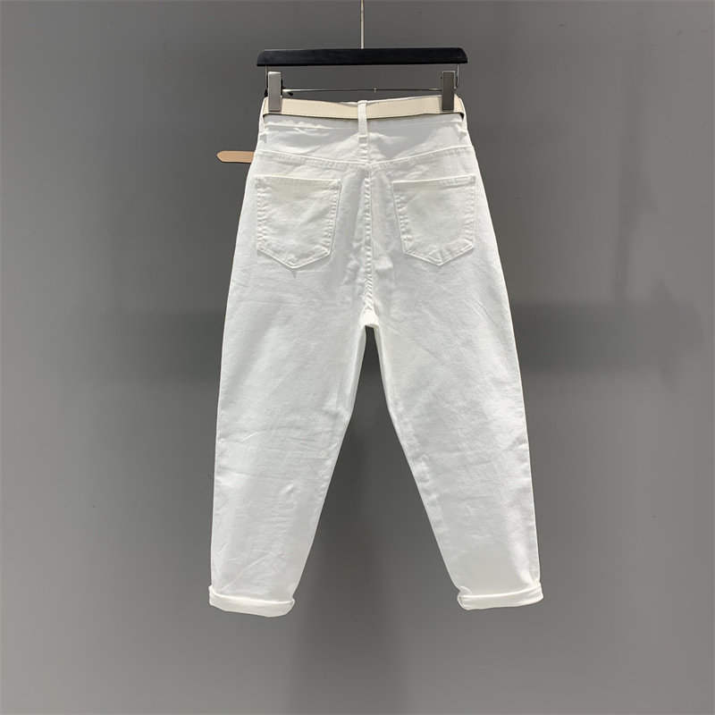 2026年春季新款白色牛仔裤女款裤子小个高腰老爹裤宽松九分哈伦裤