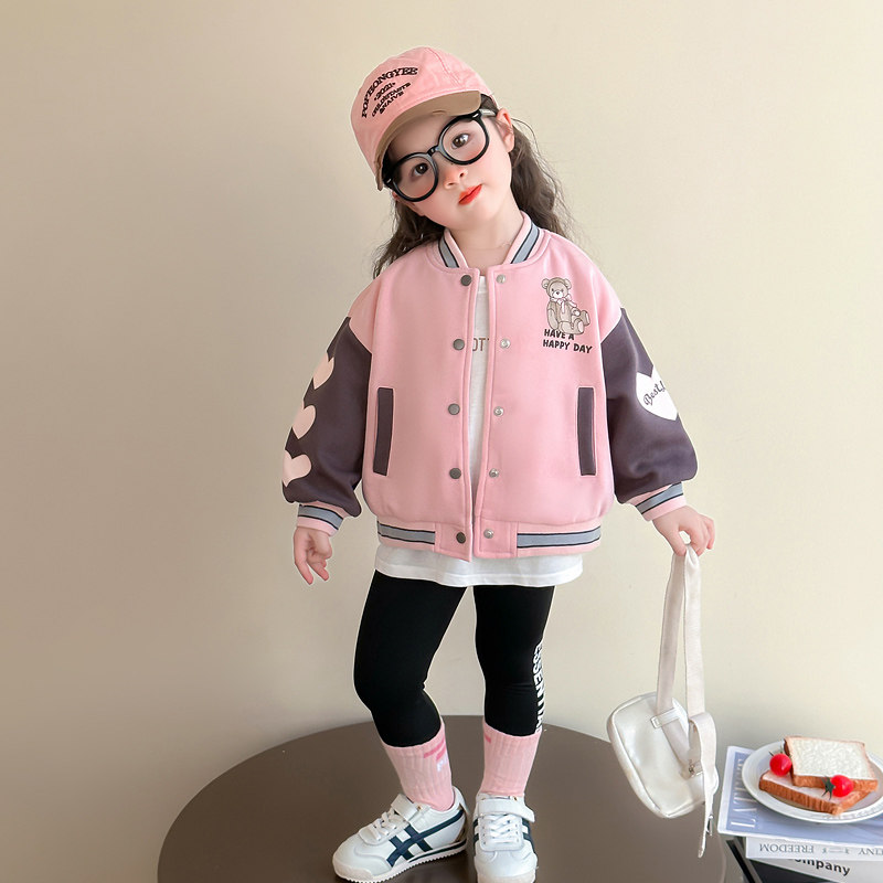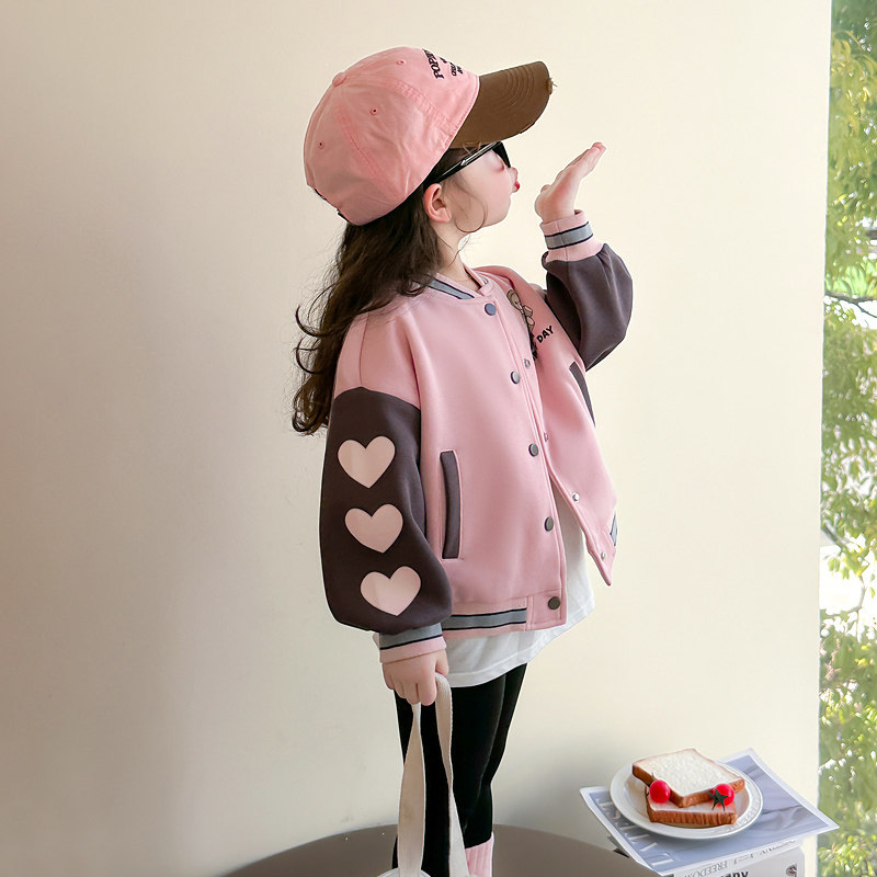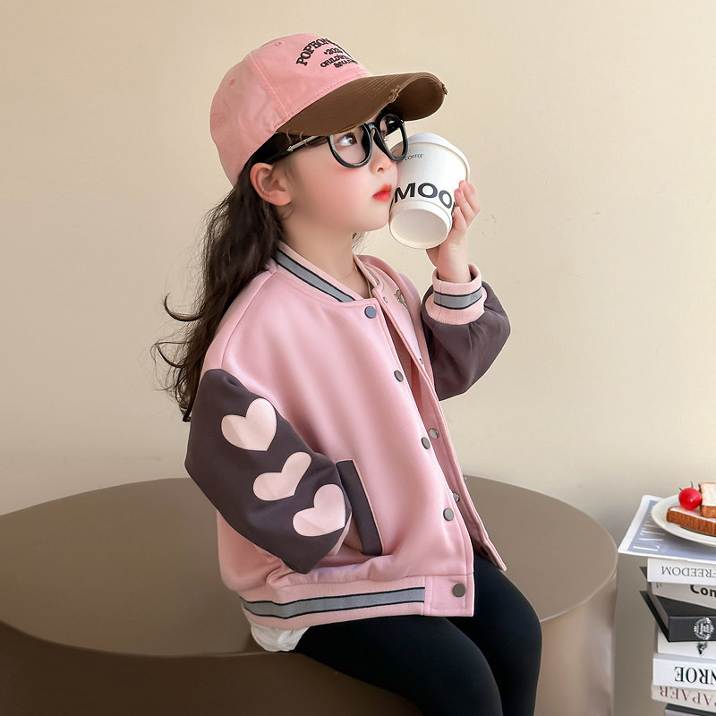 女童外套春秋款2026新款儿童棒球服爱心洋气宝宝春季春装卫衣上衣