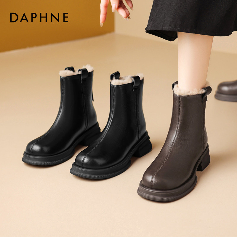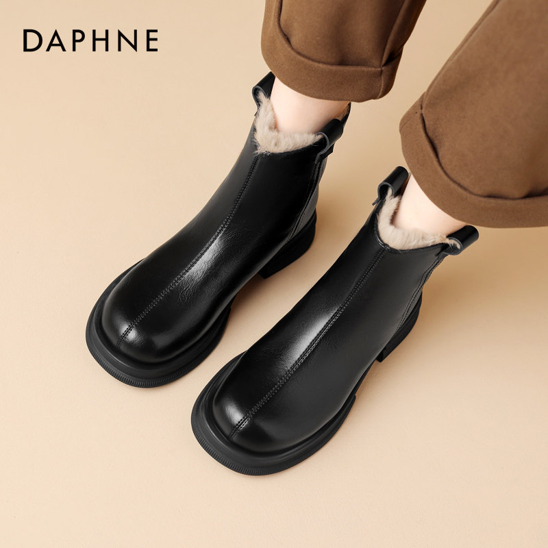 达芙妮短靴女款2025新款冬季加绒加厚棉鞋真皮雪地靴切尔西马丁靴
