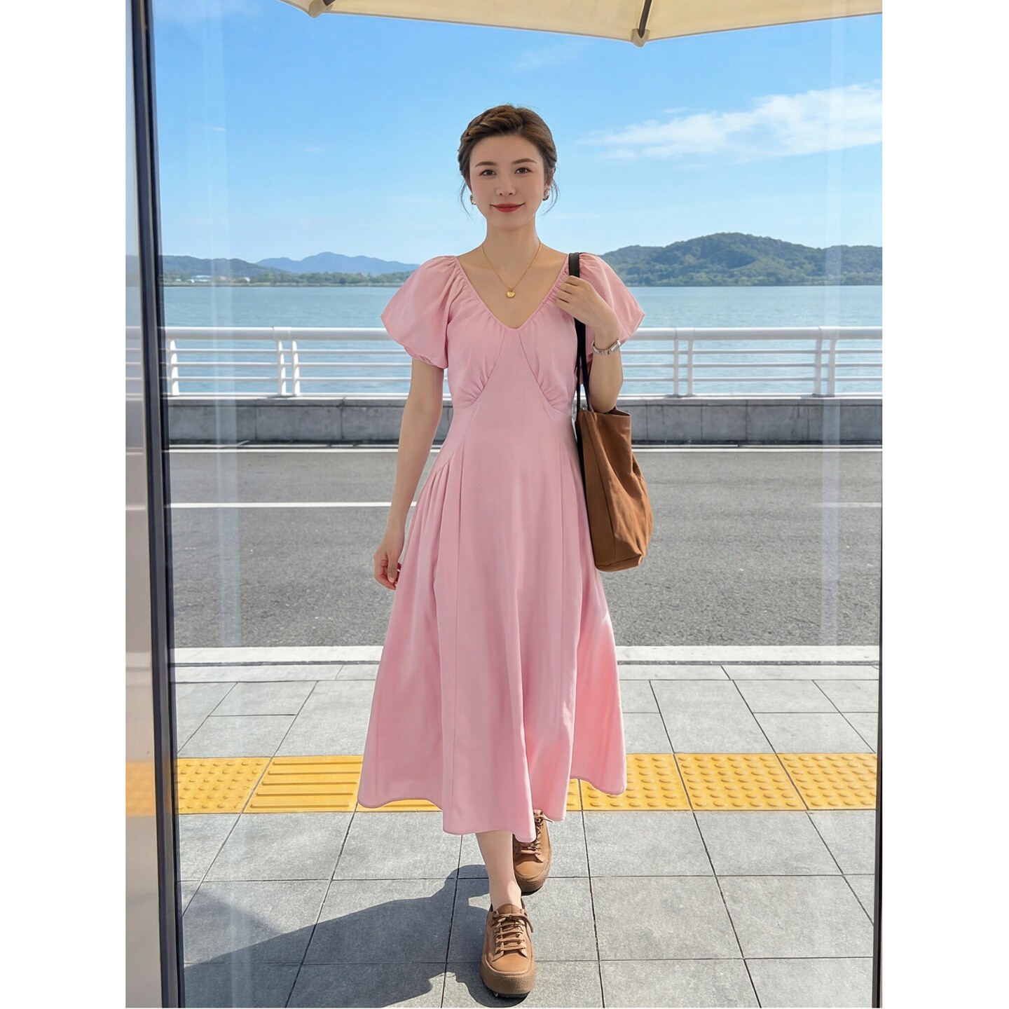 奢华2026夏季新款韩版显瘦减龄小个子穿搭温柔小清新粉色连衣裙女