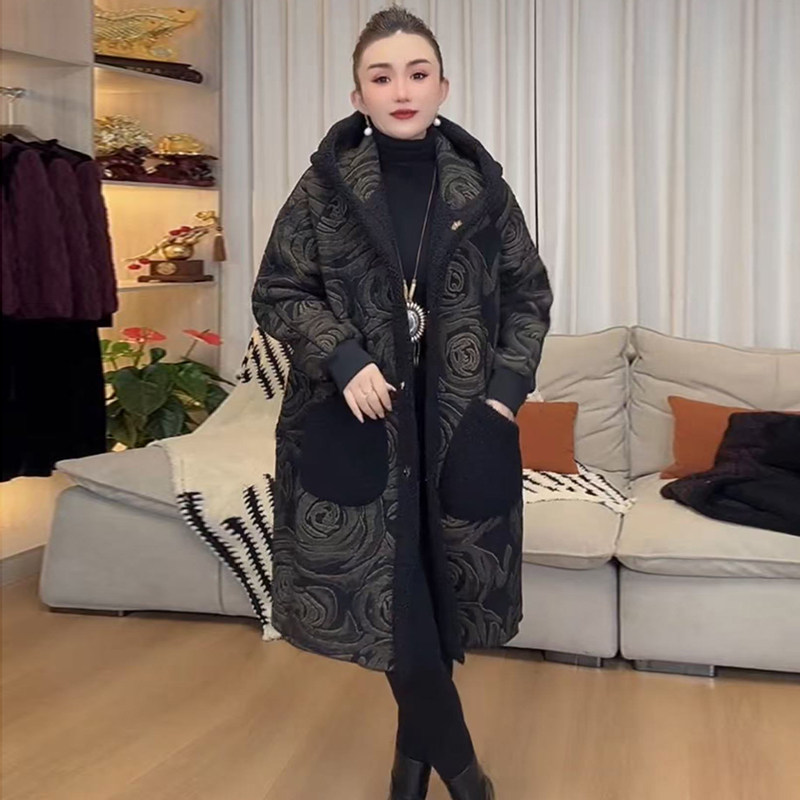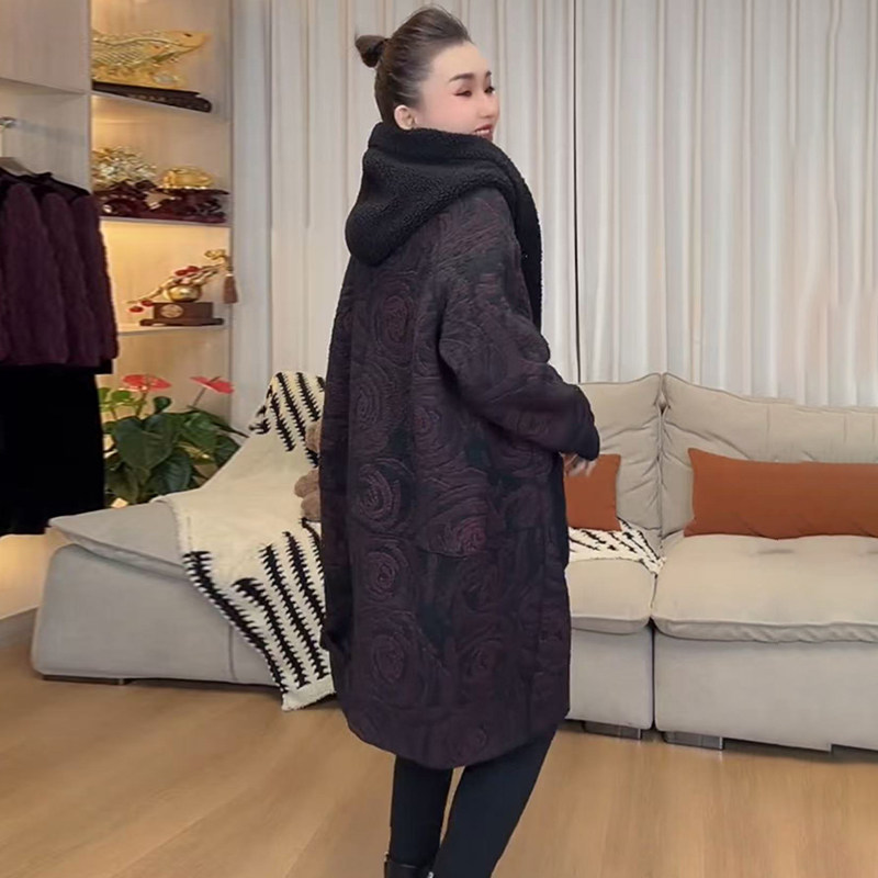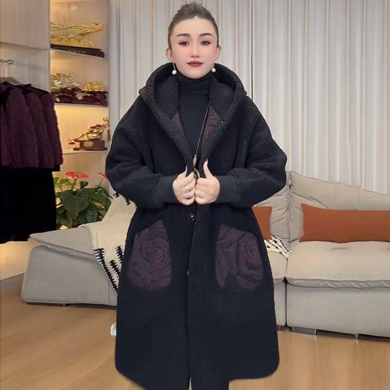 妈妈冬装加厚保暖双面穿羊剪绒外套女中长款羊羔毛加肥加大码棉服