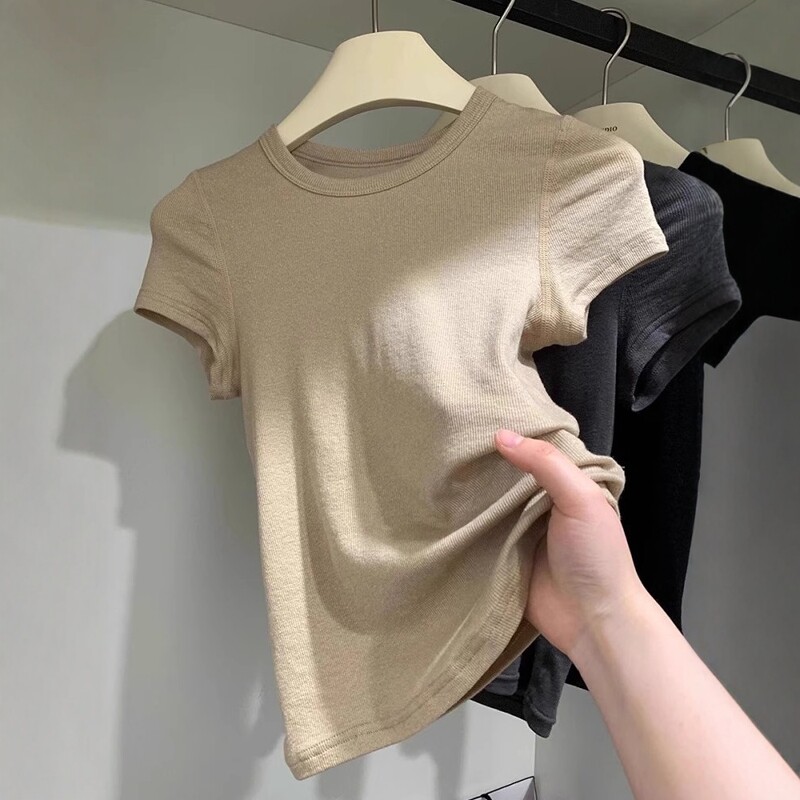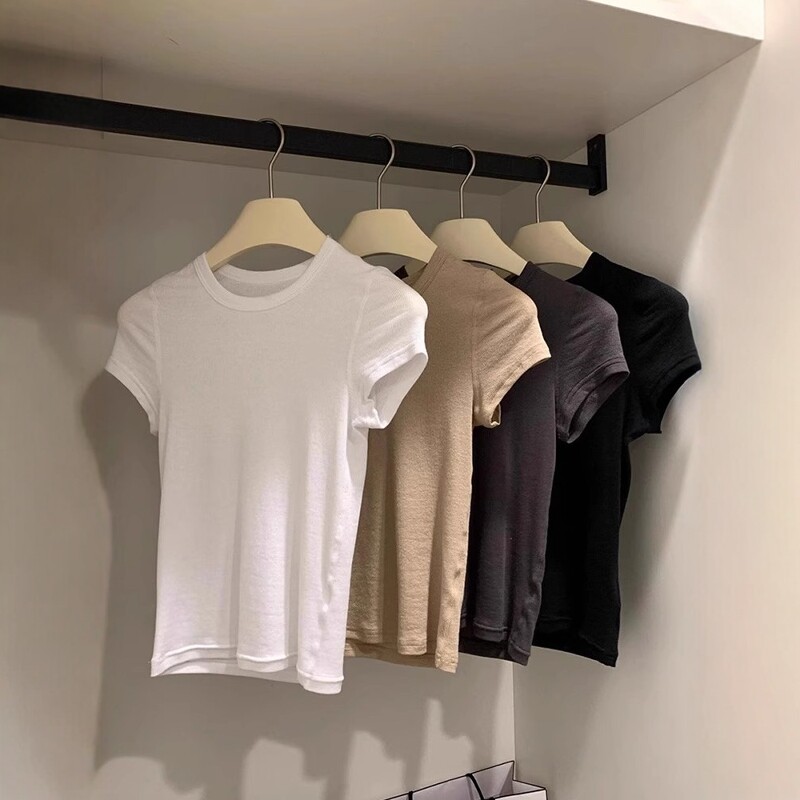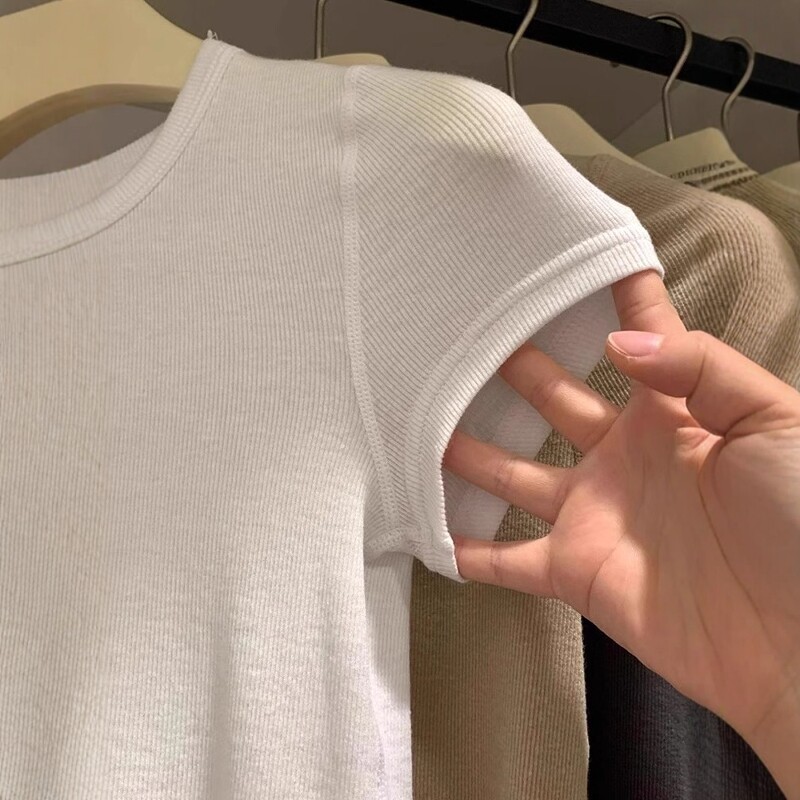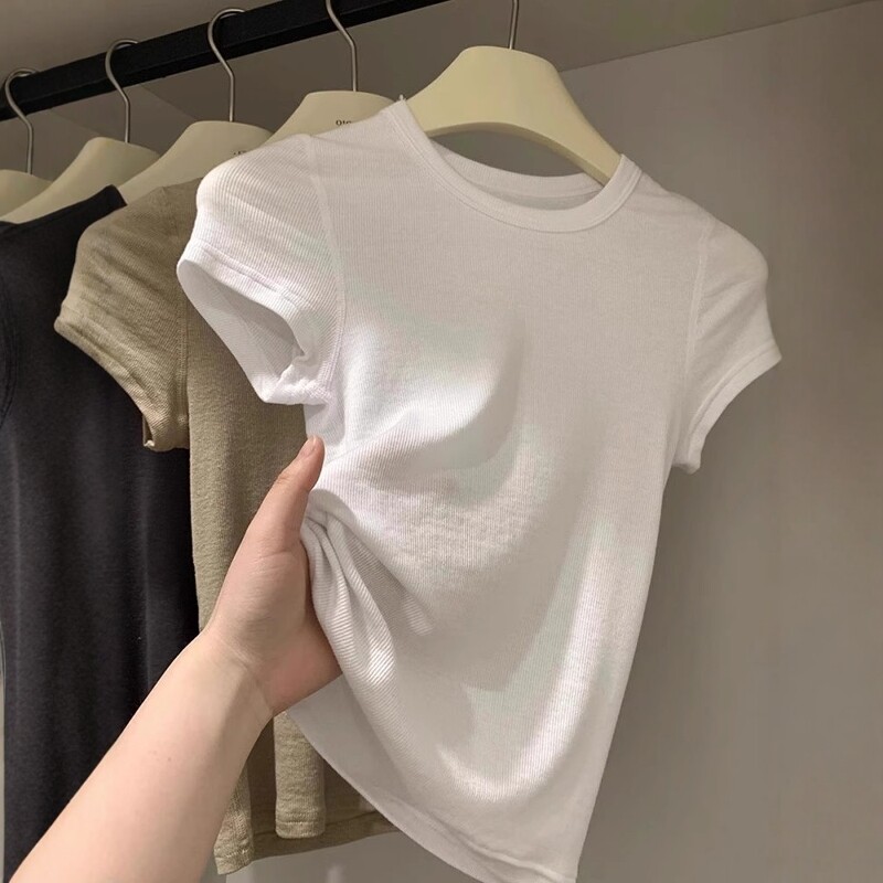 简约白色修身显瘦短袖正肩t恤女夏装2026新款高级感独特别致上衣