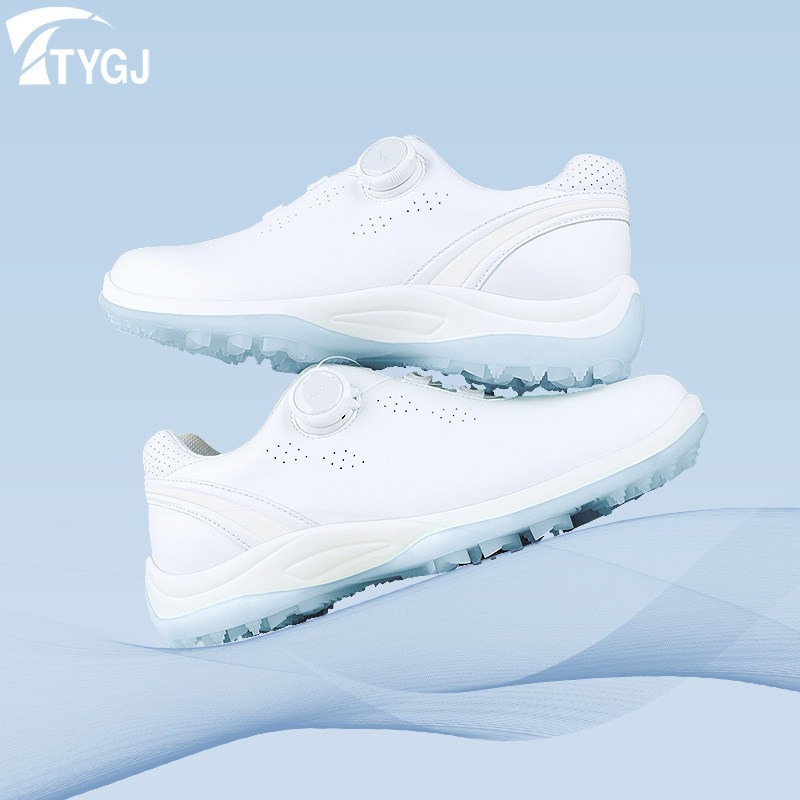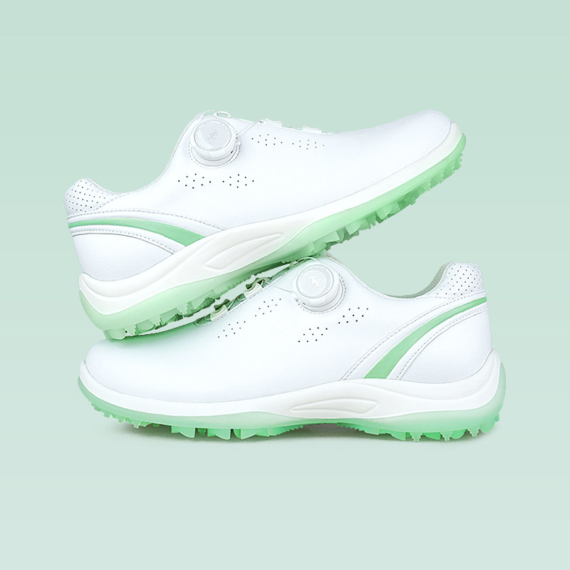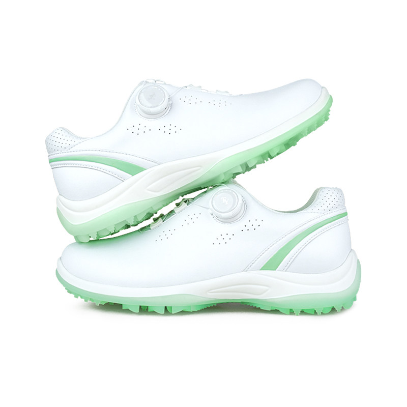 高尔夫球鞋女士防水防滑旋转钮鞋带鞋子固定钉轻便捷白绿色运动鞋