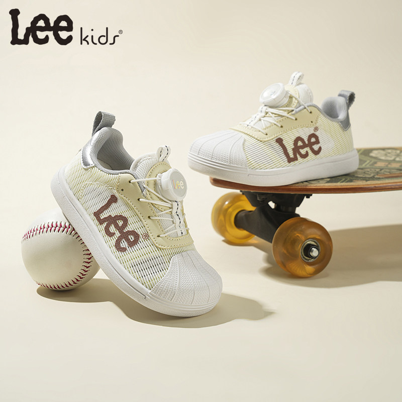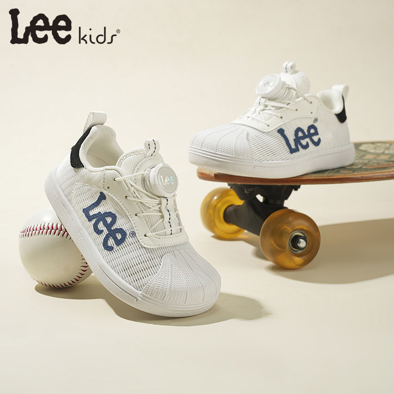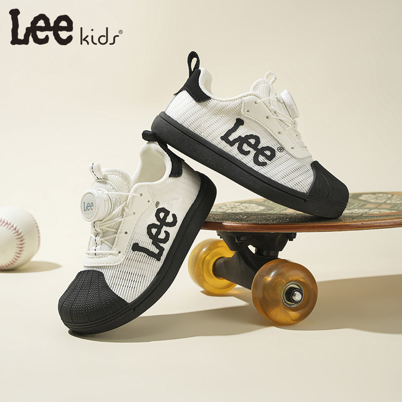 Lee Kids儿童板鞋2026春秋新款轻便透气小白鞋低帮旋钮休闲运动鞋