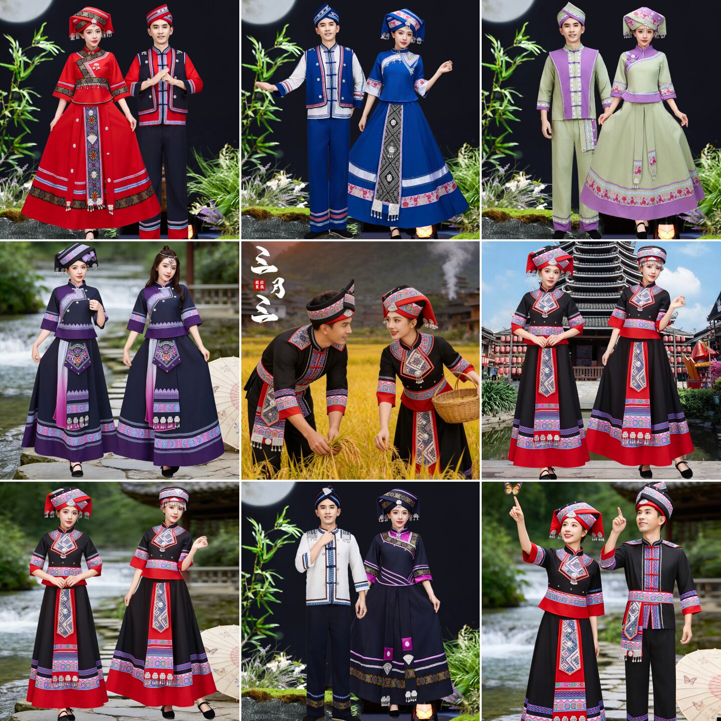 新款广西壮族三月三成人56个少数民族服装女苗族彝族舞蹈演出服男