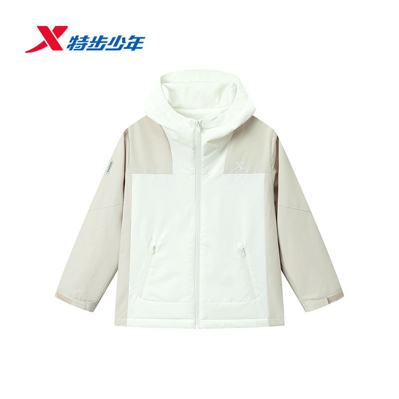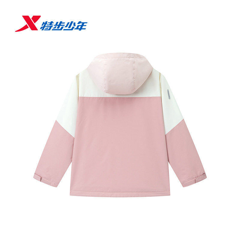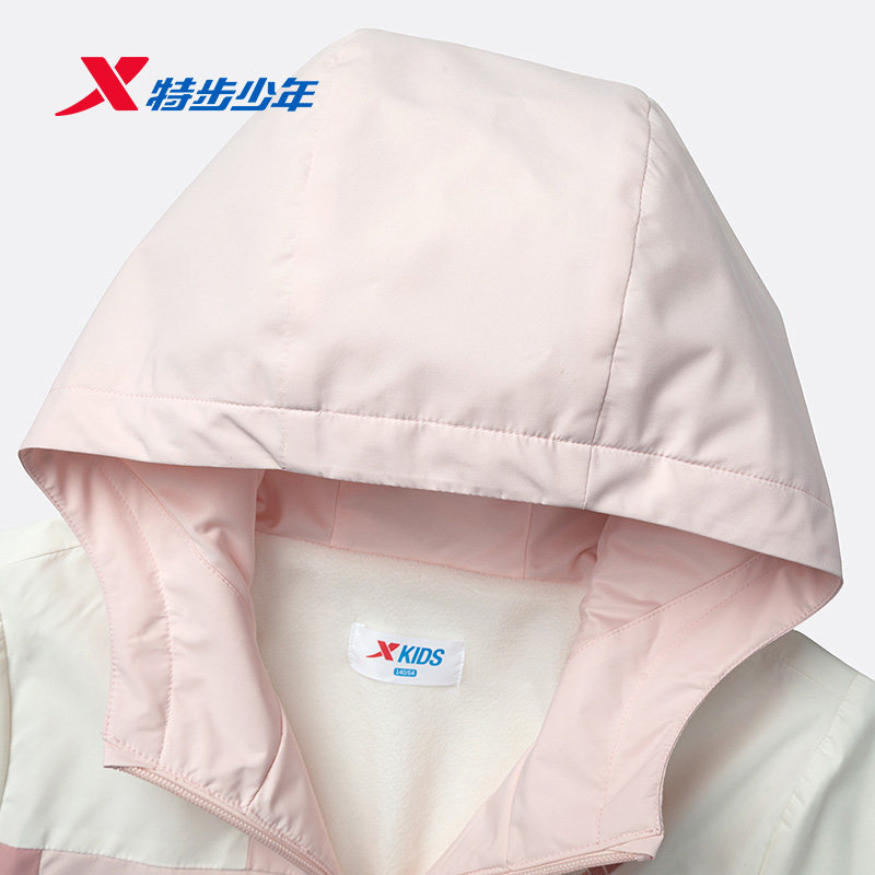 【商场同款】特步童装春秋新款大童保暖连帽风衣儿童运动女童外套