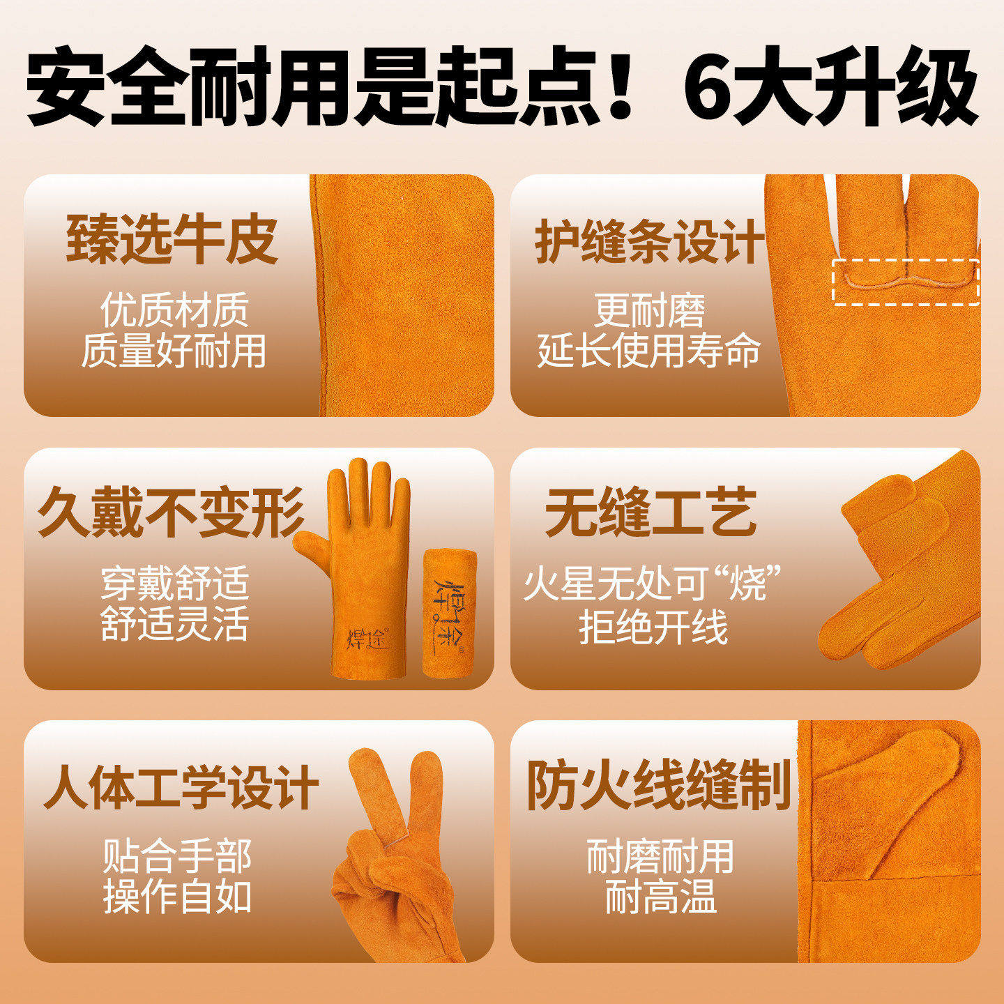 电焊手套牛皮耐高温焊工专用防烫柔软烧焊接工作无缝耐磨隔热二保