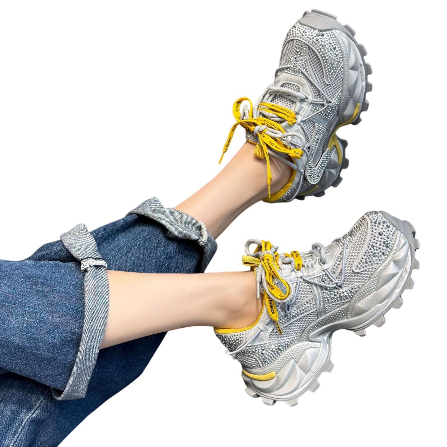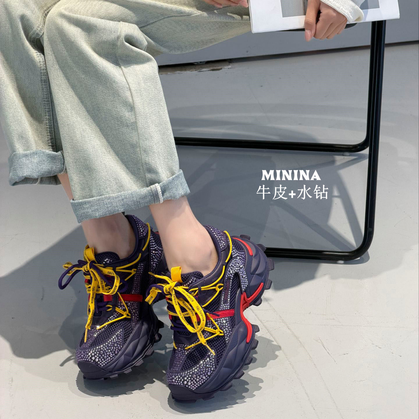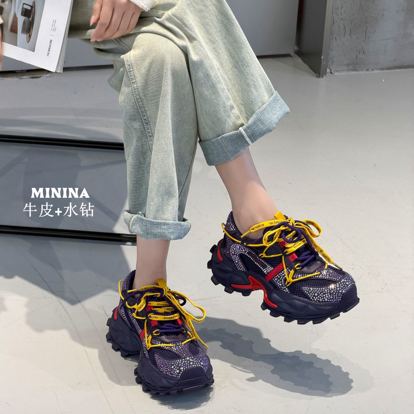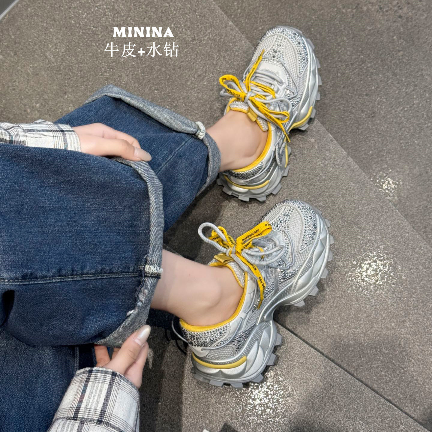 纯皮单网面水钻老爹鞋女透气轻便软底舒适薄款广州休闲运动鞋夏潮