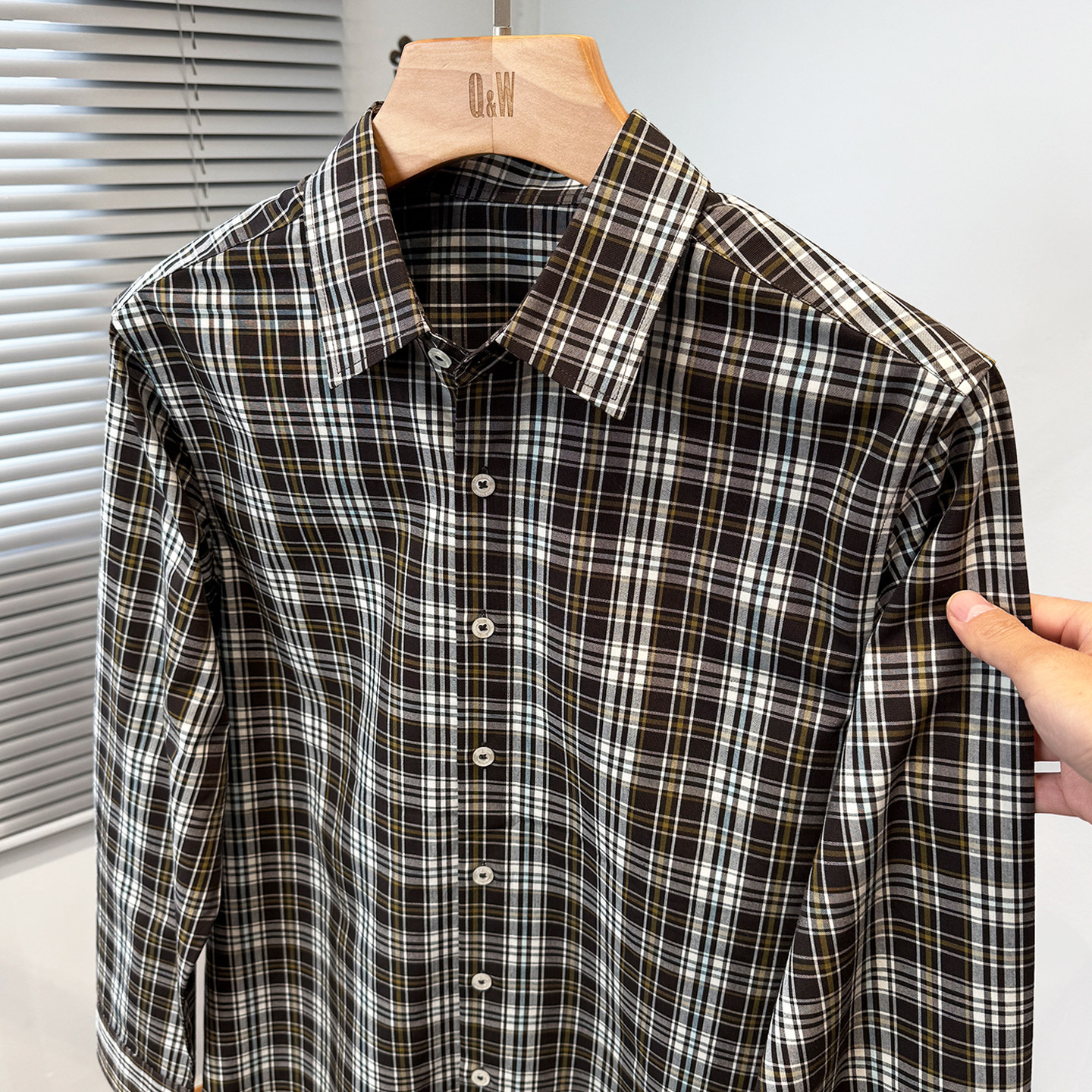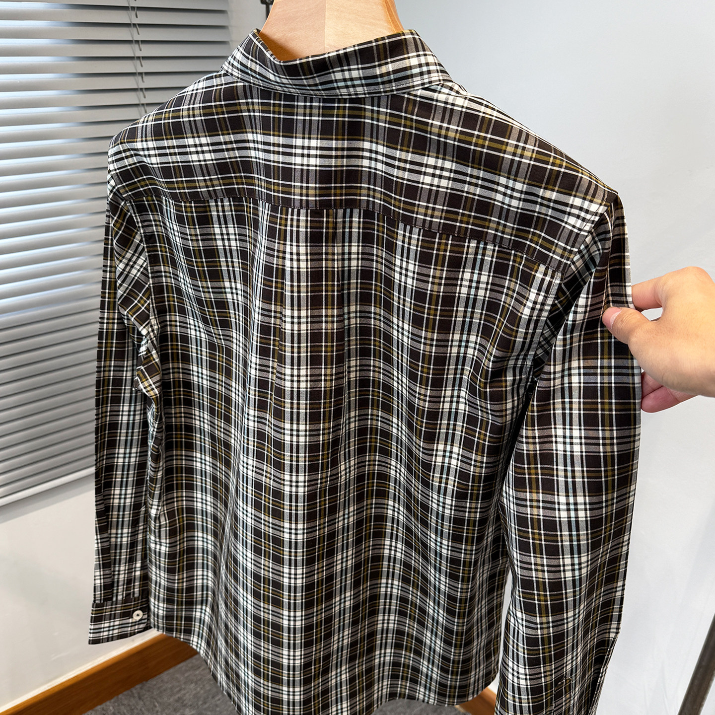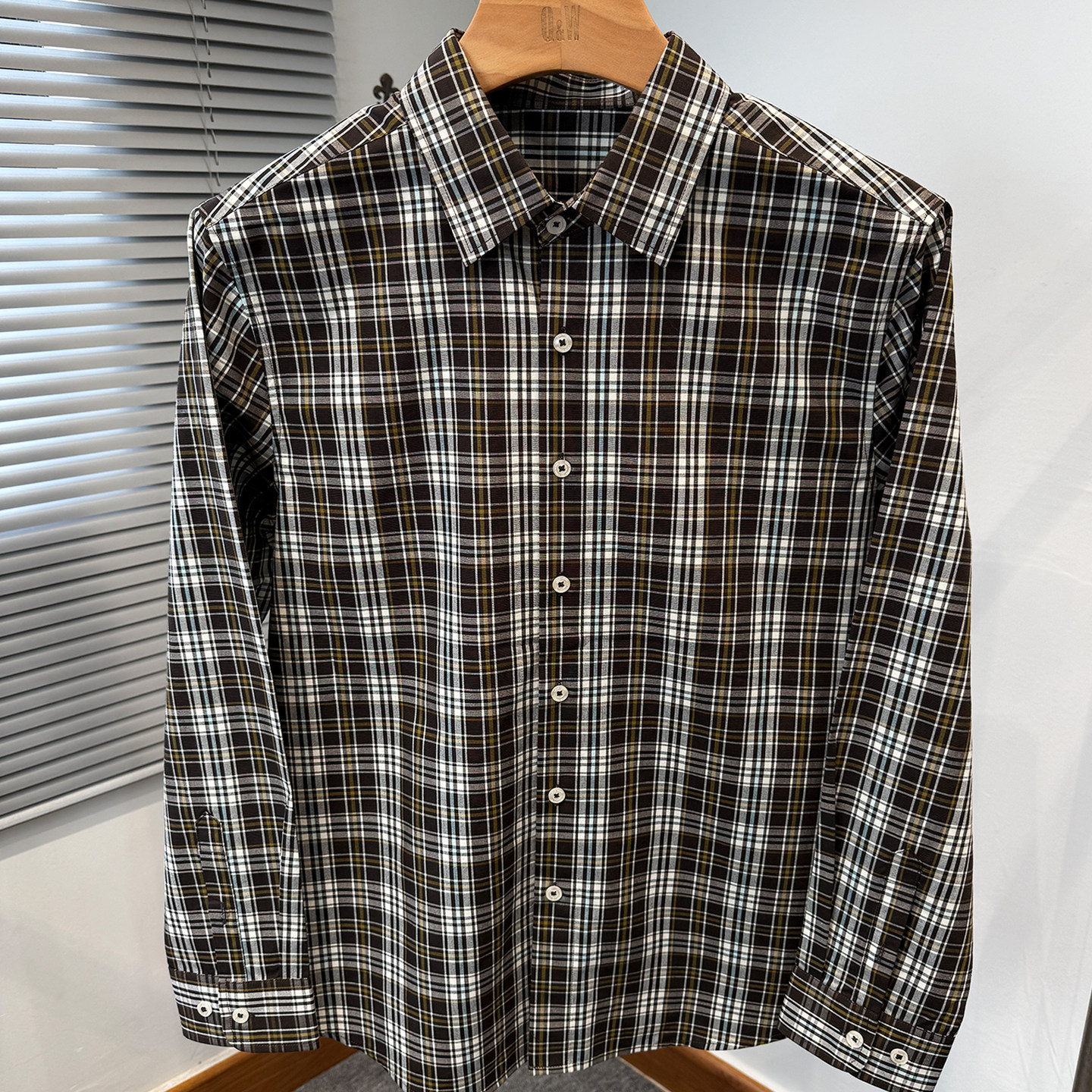 高级感色织格子衬衫男长袖2026年新款春装纯棉衬衣服中年休闲外套