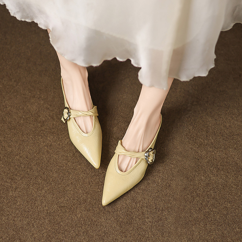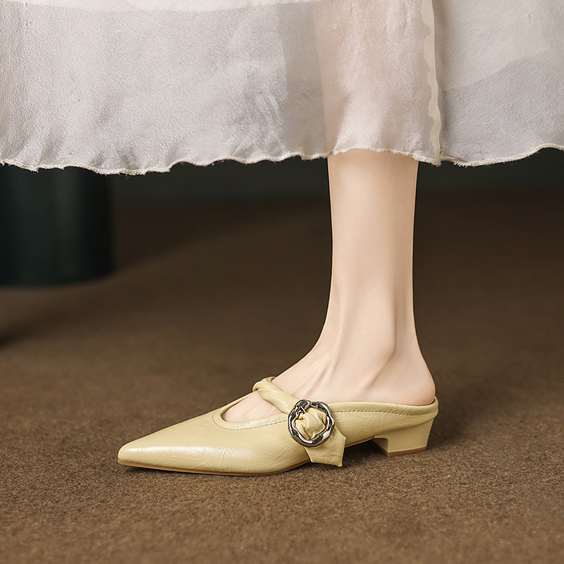 羊皮版~真皮尖头半拖穆勒鞋2026夏季新款配裙子一脚蹬包头凉拖女