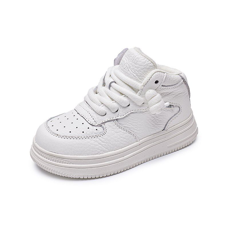儿童头层牛皮运动鞋2025春秋季新款男童中高帮真皮板鞋女童小白鞋