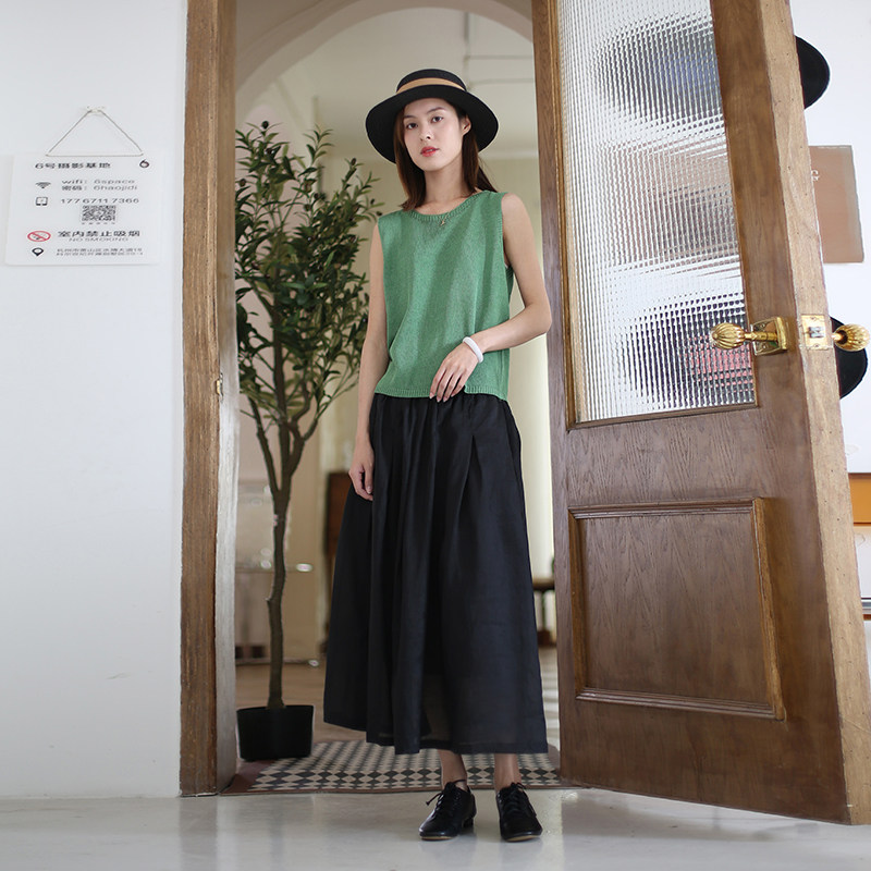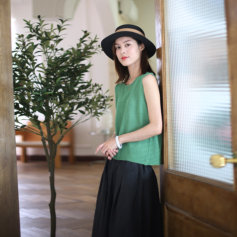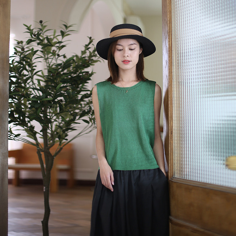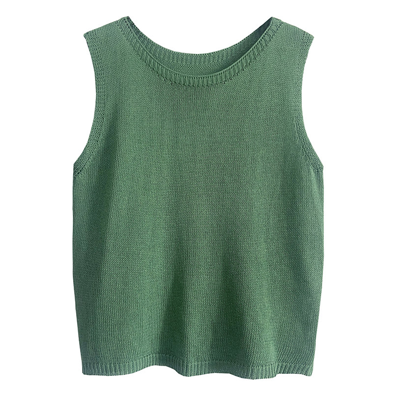 2026新款女装夏季纯色圆领针织亚麻显瘦背心 女 无袖马甲百搭上衣
