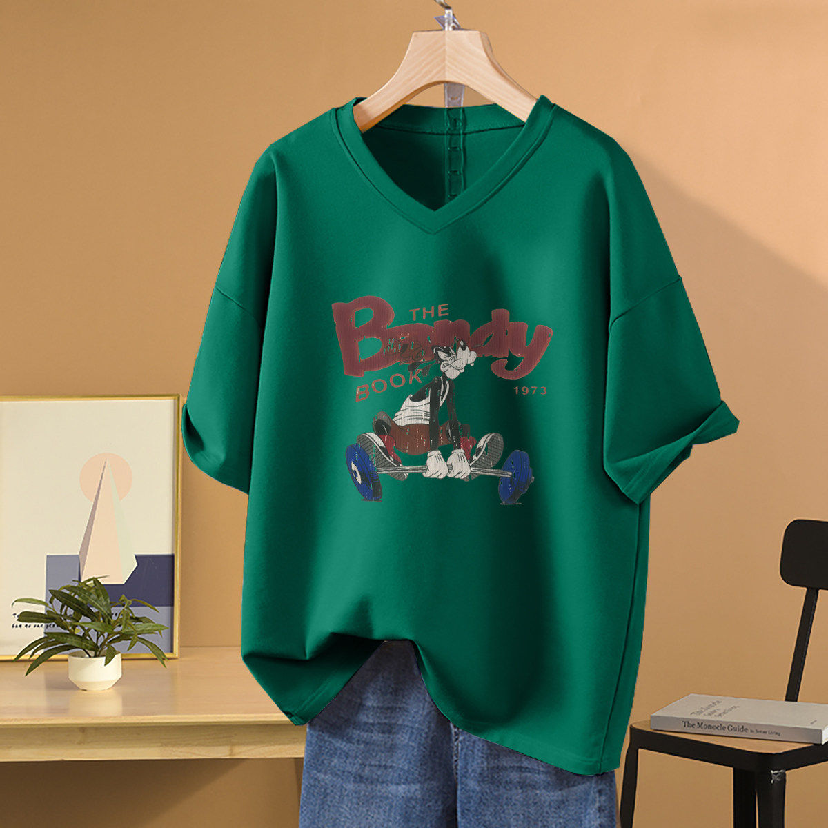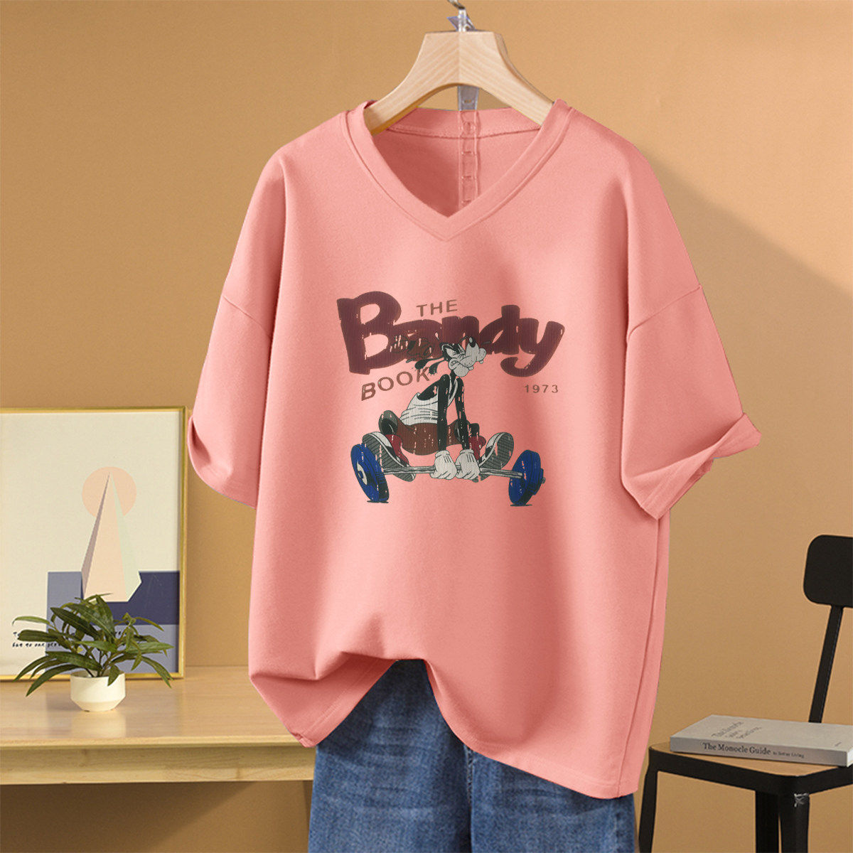 夏季胖mm纯棉v领短袖t恤女款2026新款爆款初中生美式宽松大码上衣