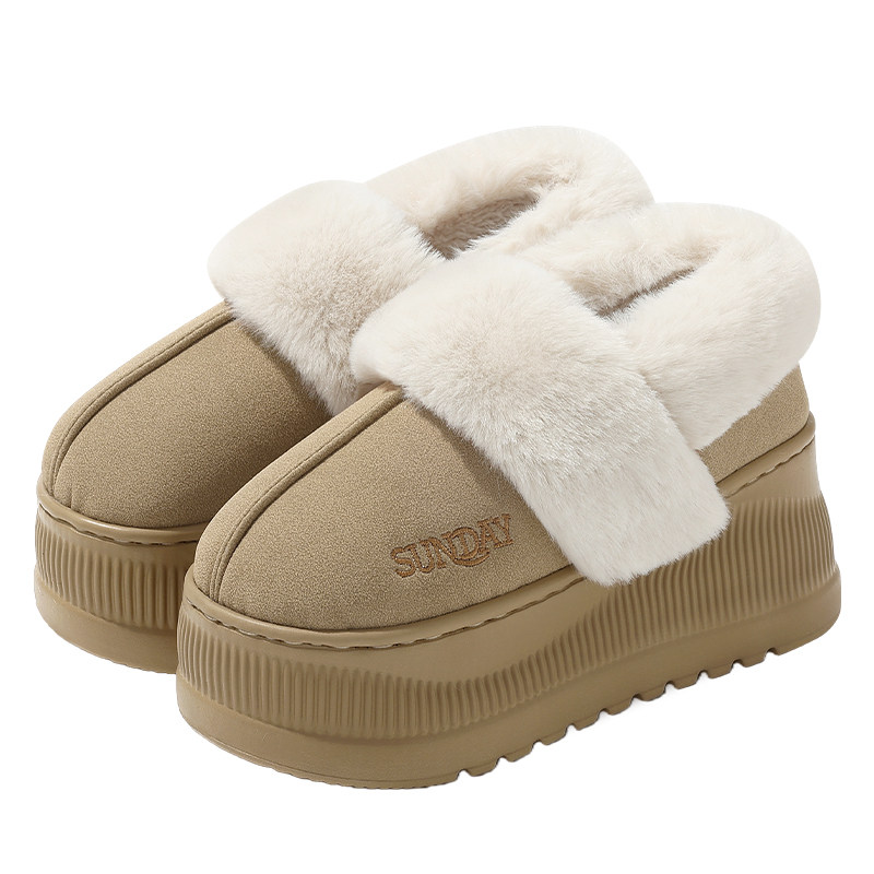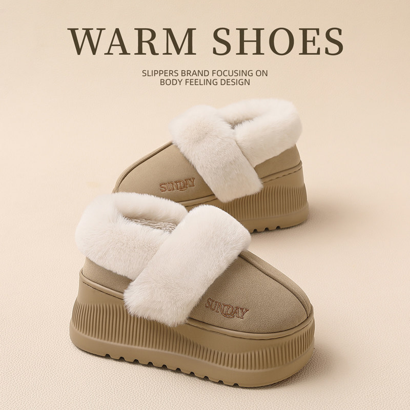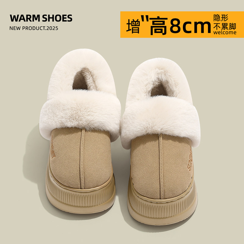增高毛绒棉鞋女款包跟厚底防滑冬季保暖居家可外穿包后跟棉拖鞋女