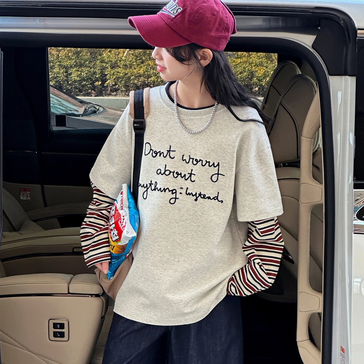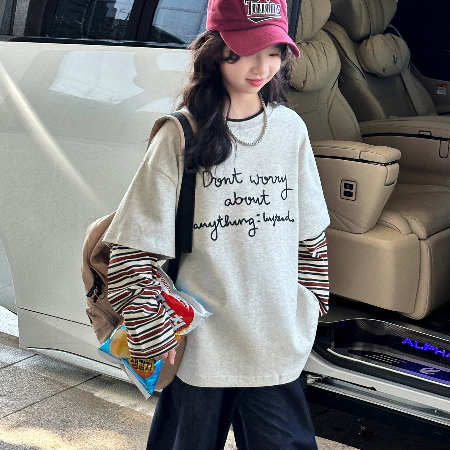 女童长袖t恤春装2026新款儿童假两件打底衫女大童超好看韩系上衣t