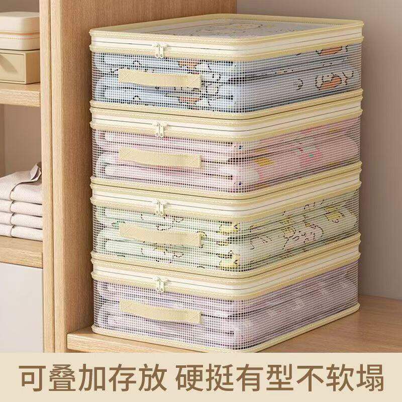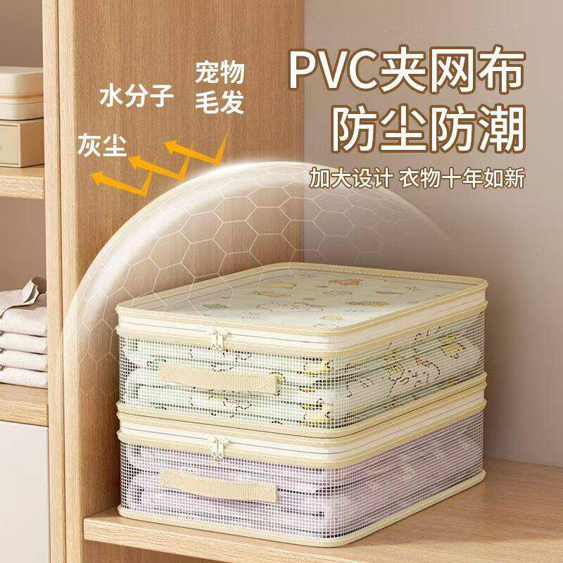 网纱四件套收纳袋家用卧室大容量防尘防潮整理盒可视窗被子防尘袋