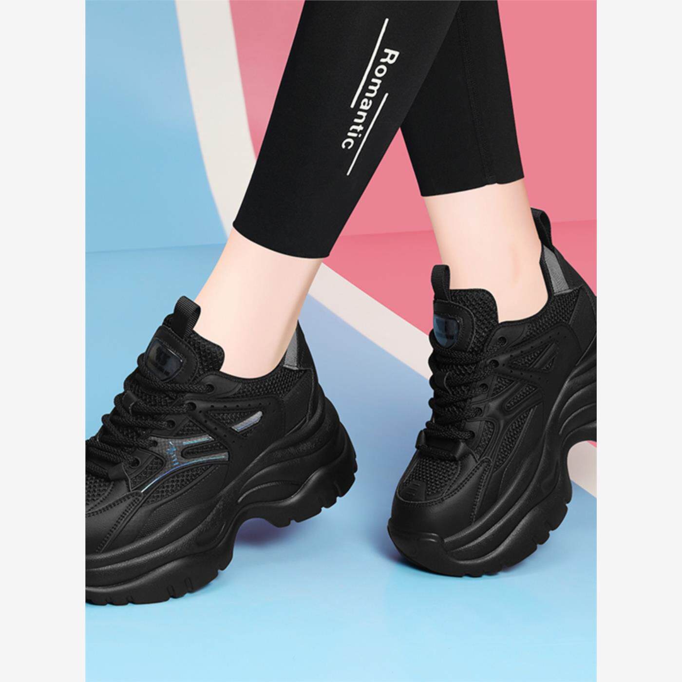 2025春季新款真皮厚底女鞋网眼透气运动休闲女式增高休闲轻巧