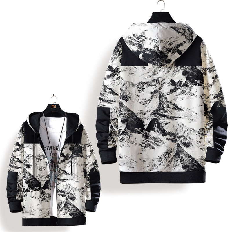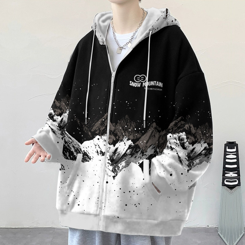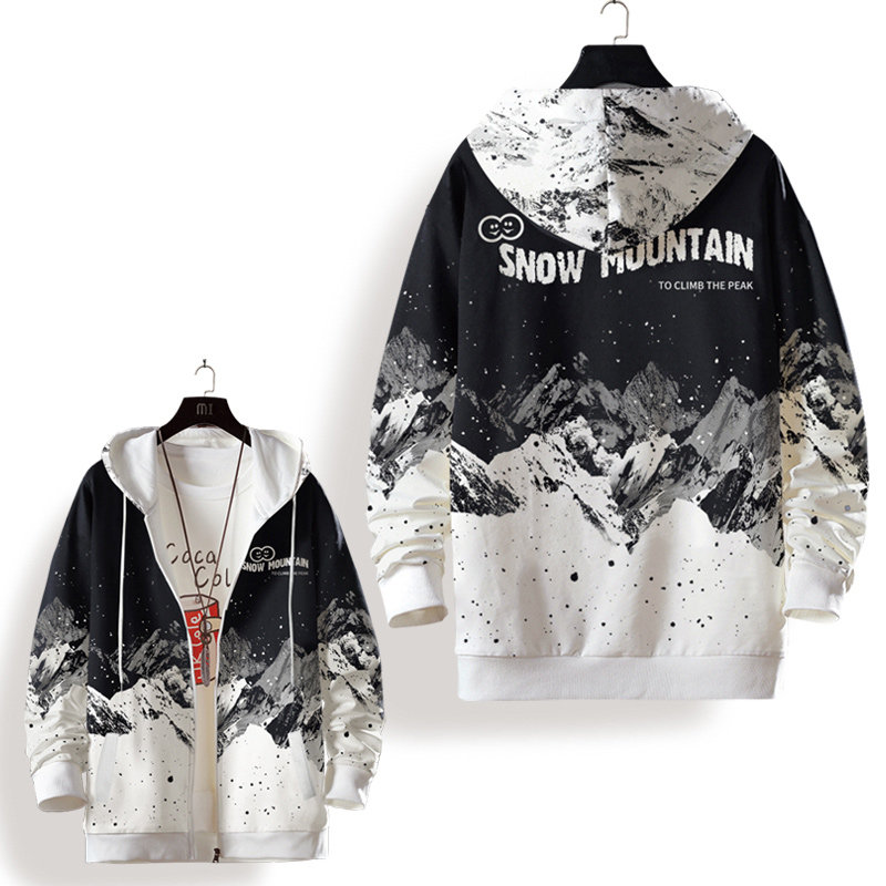 宽松卫衣男款春季重磅连帽薄款开衫外套oversize雪山字母时尚衣服