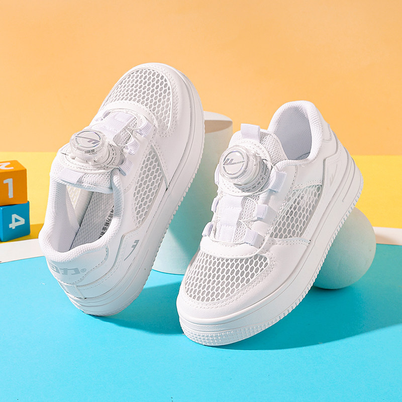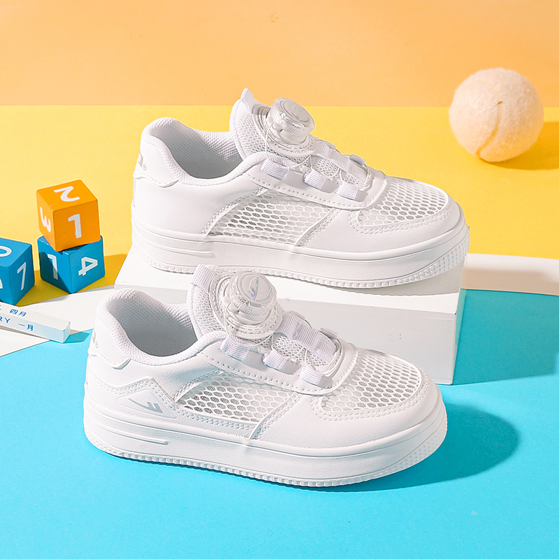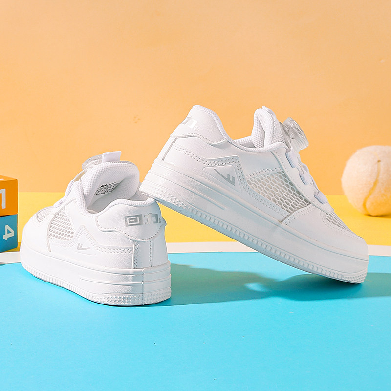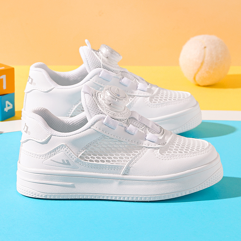 回力官方旗舰店儿童小白鞋2024春秋款女童网面旋转纽扣跑步运动鞋