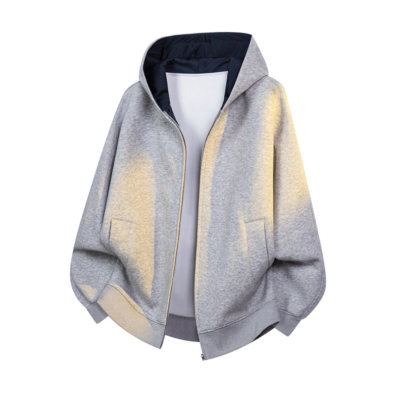 灰色开衫卫衣撞色男女款2026新款秋冬加厚设计感小众运动连帽外套