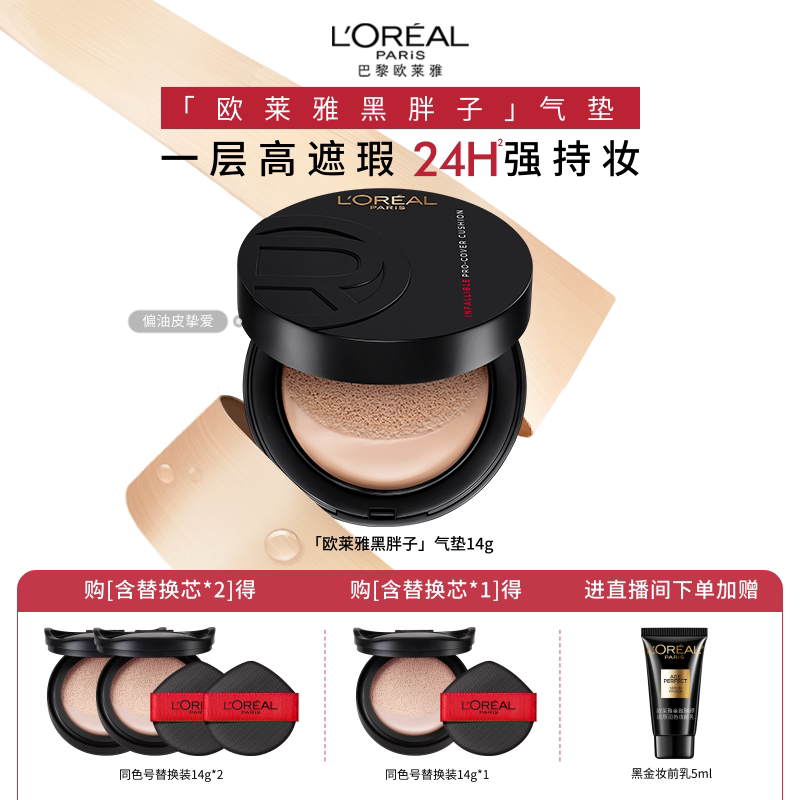 欧莱雅黑胖子气垫bb霜遮瑕控油粉底液持久不脱妆补妆女官方正品