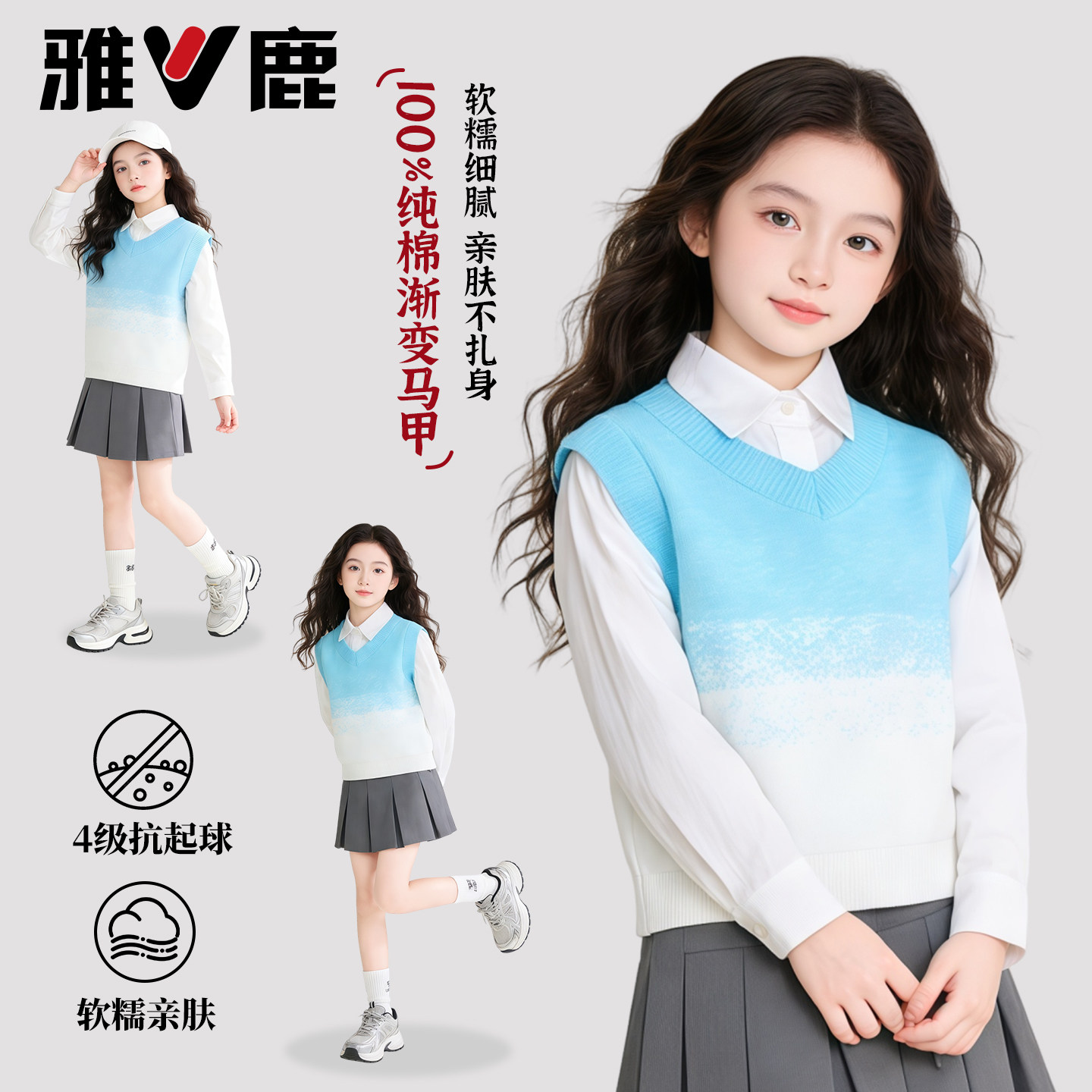 雅鹿女童马甲2026春季新款儿童纯棉渐变毛衣女孩甜美无袖针织衫潮