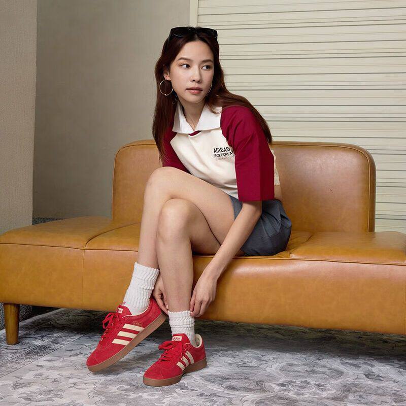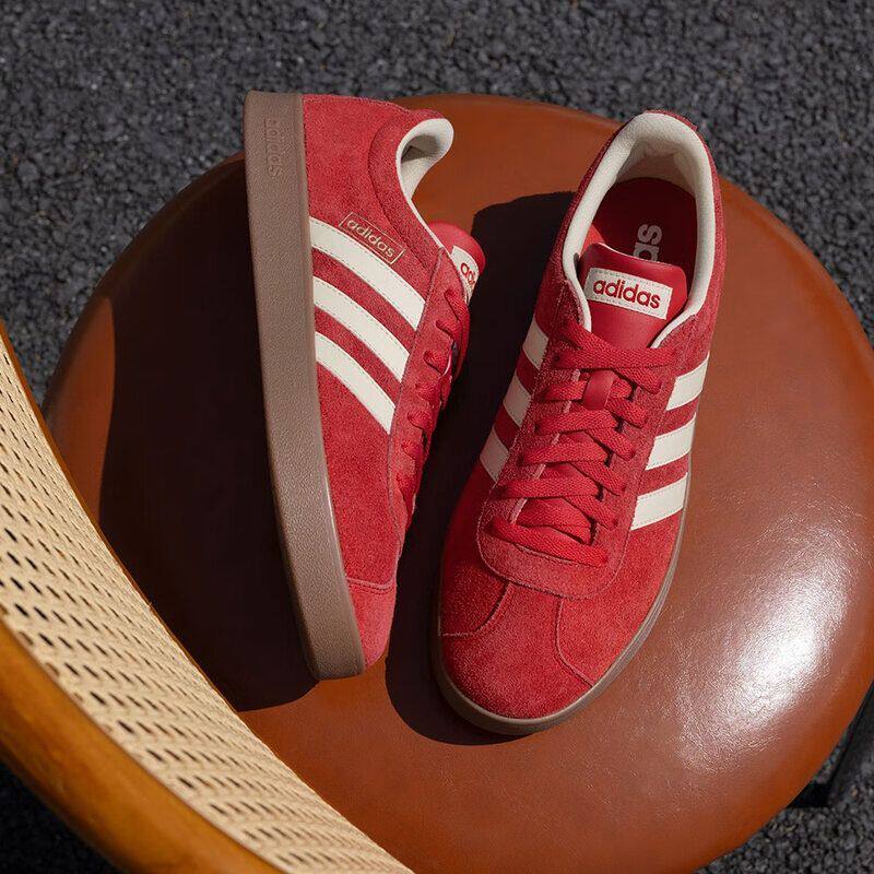 阿迪达斯adidas男女款VL COURT运动休闲板鞋德训鞋T头鞋红 KK3774