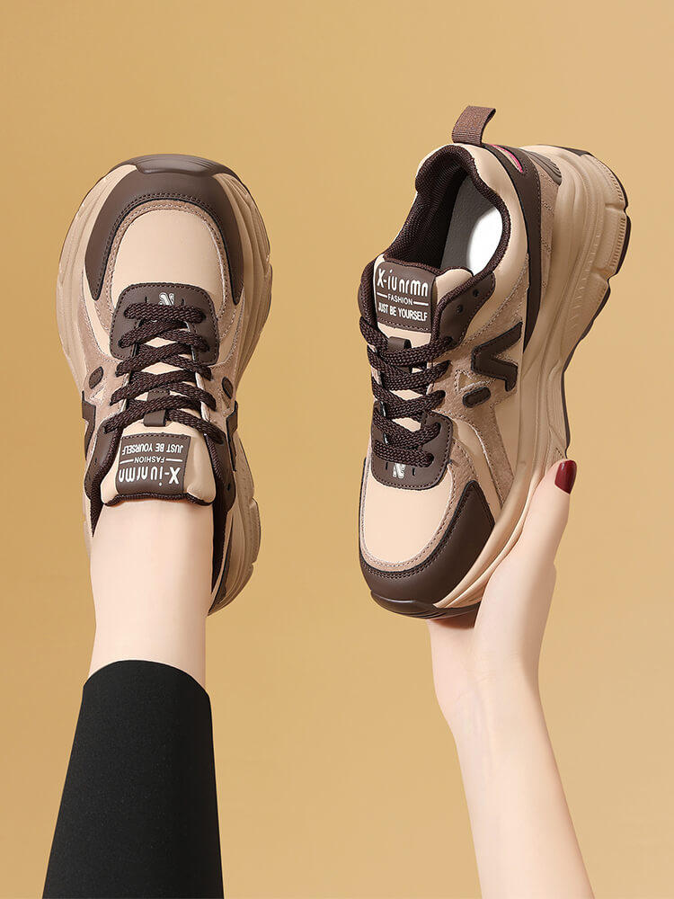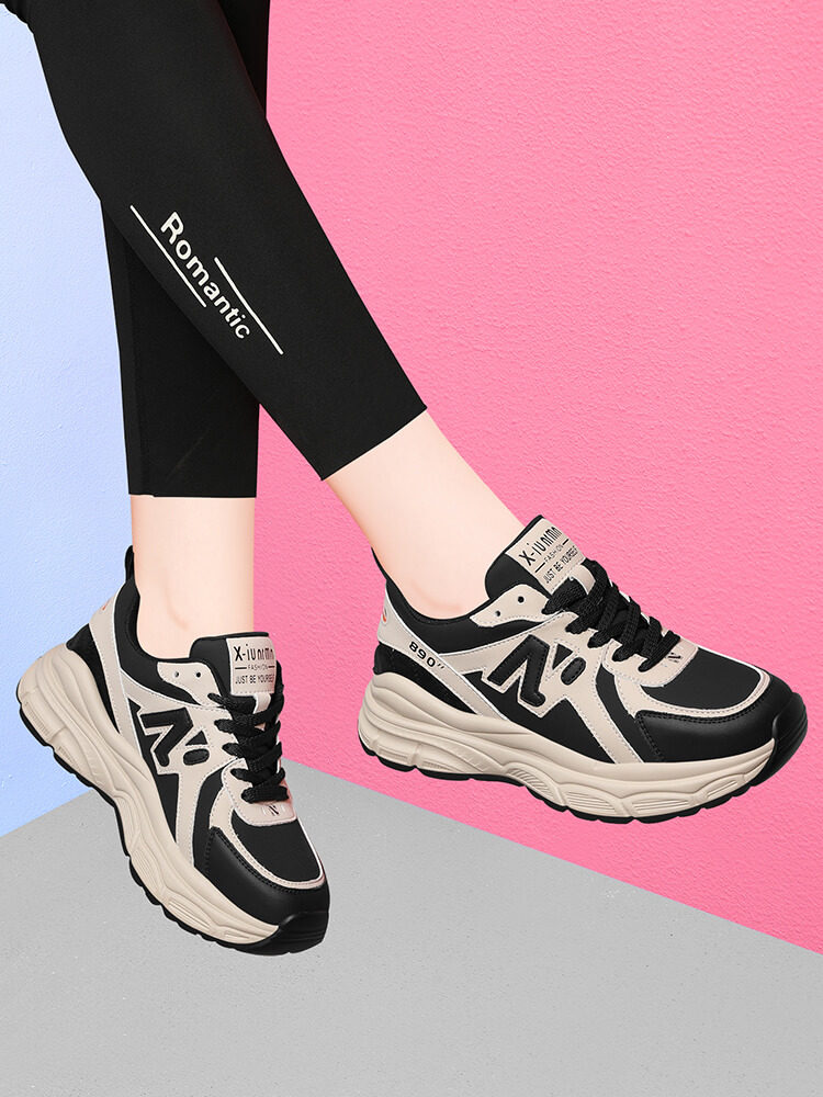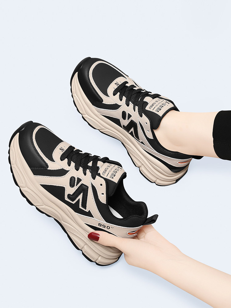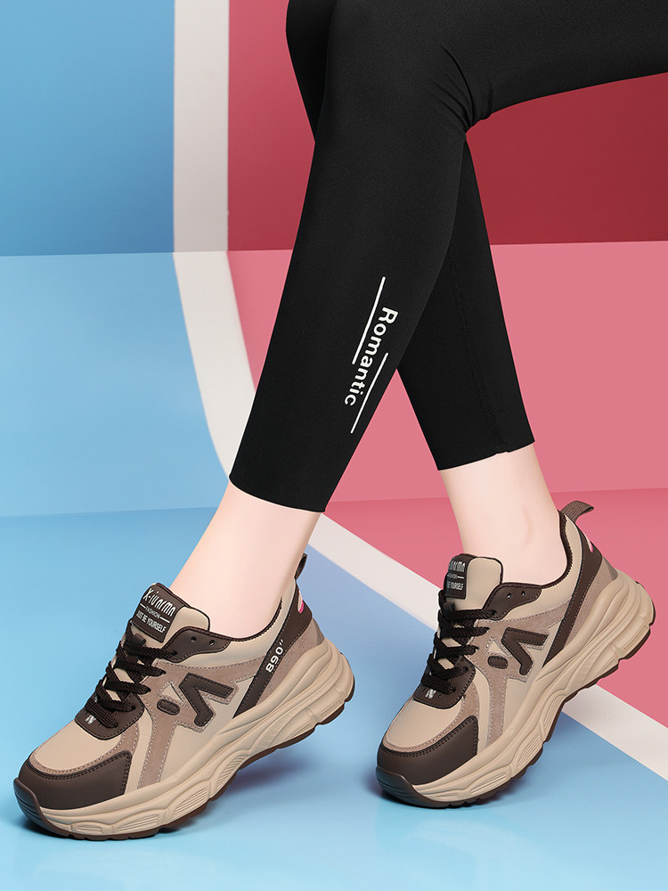真皮运动鞋百搭女鞋2024春秋新款轻便软底休闲厚底皮面旅游老爹鞋