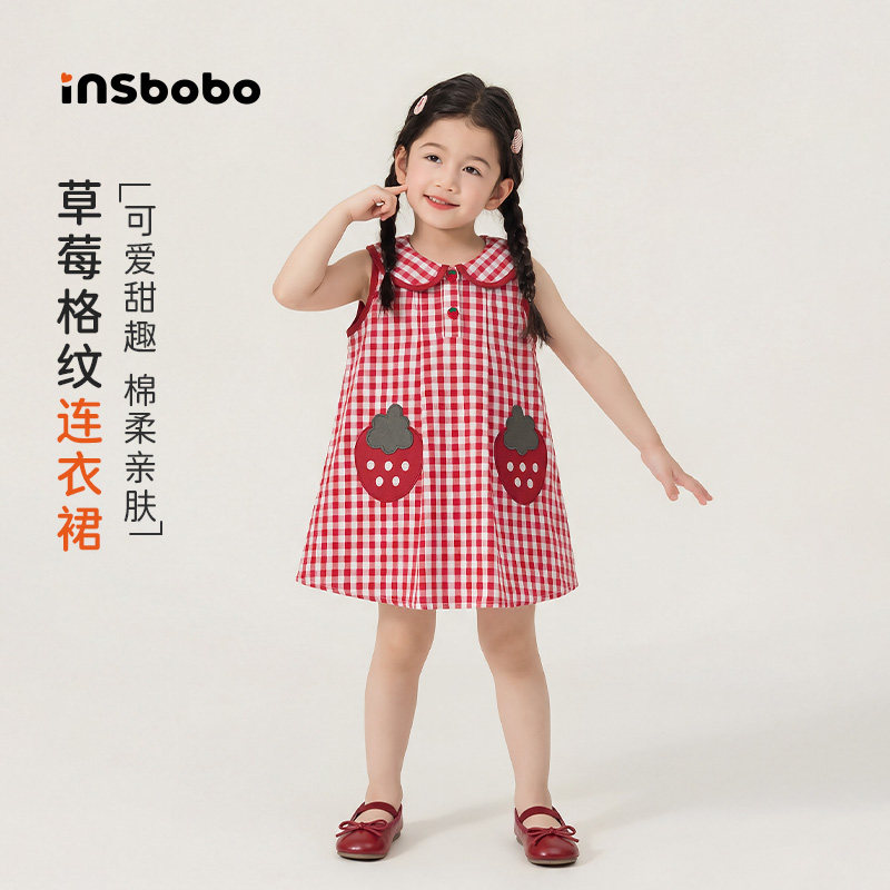 INSbobo女童连衣裙2026夏季新款儿童裙子女孩红色衣服好看夏装潮