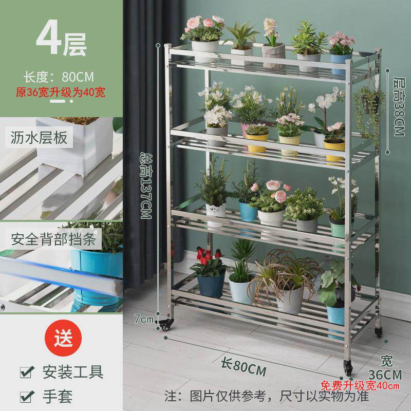 花架多肉多层不锈钢花架子阳台置物户外客厅落地式铁艺可移动带轮