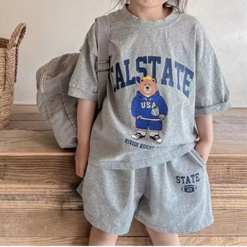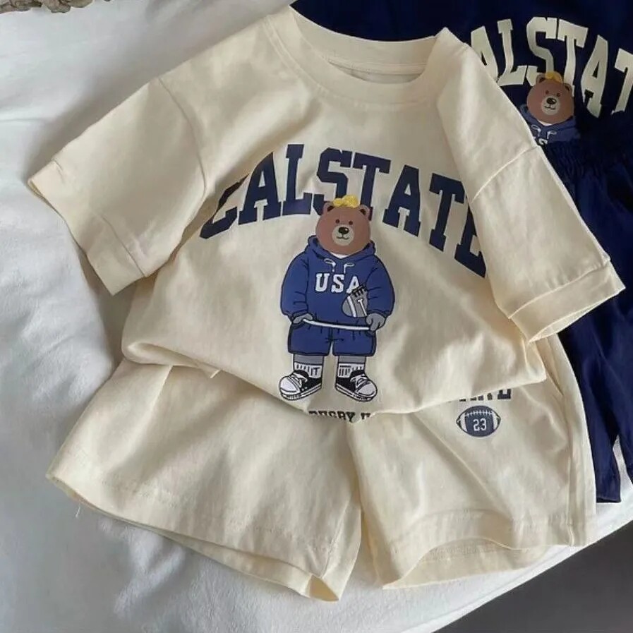 311线报网描述:儿童卡通小熊套装 夏款纯棉 宽松运动休闲