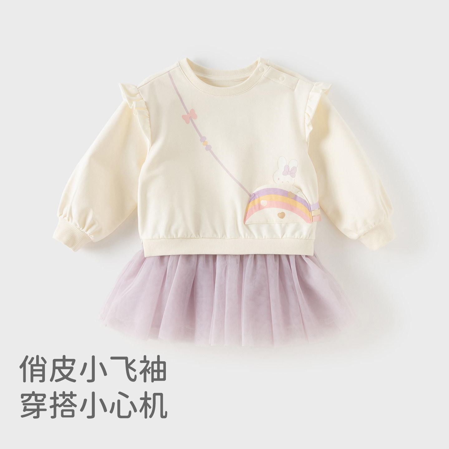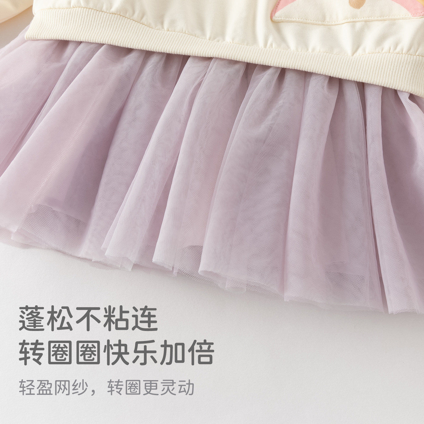 戴维贝拉儿童拼接连衣裙2026春新款女童假两件卫衣网纱裙女宝裙子