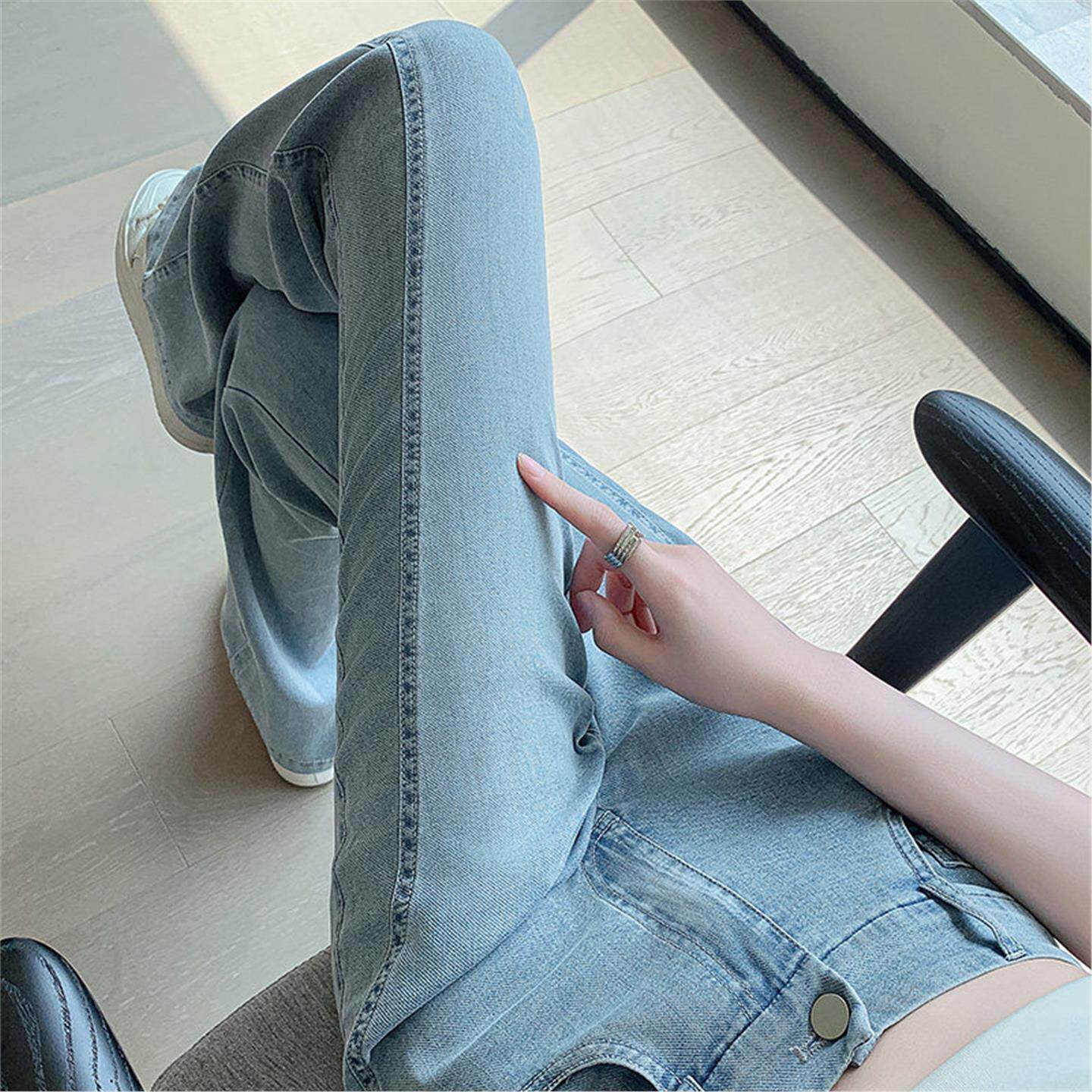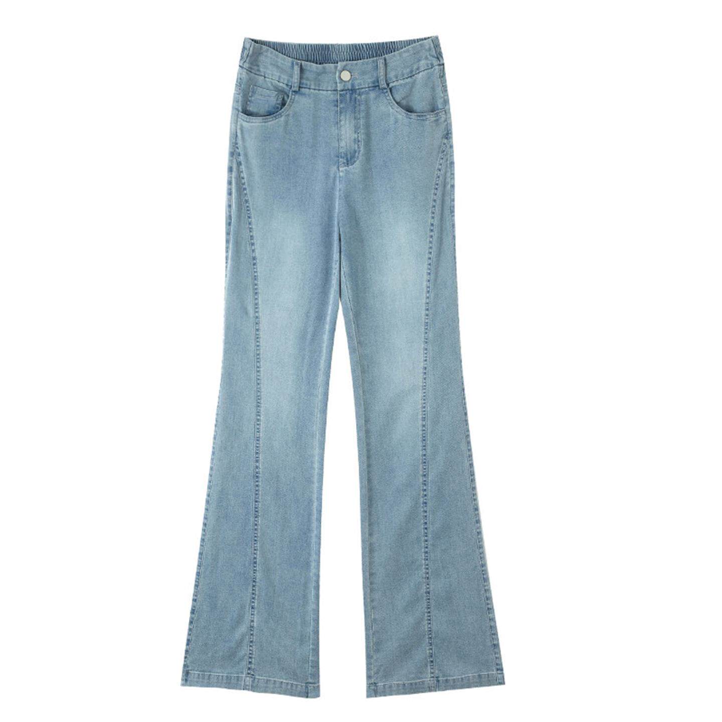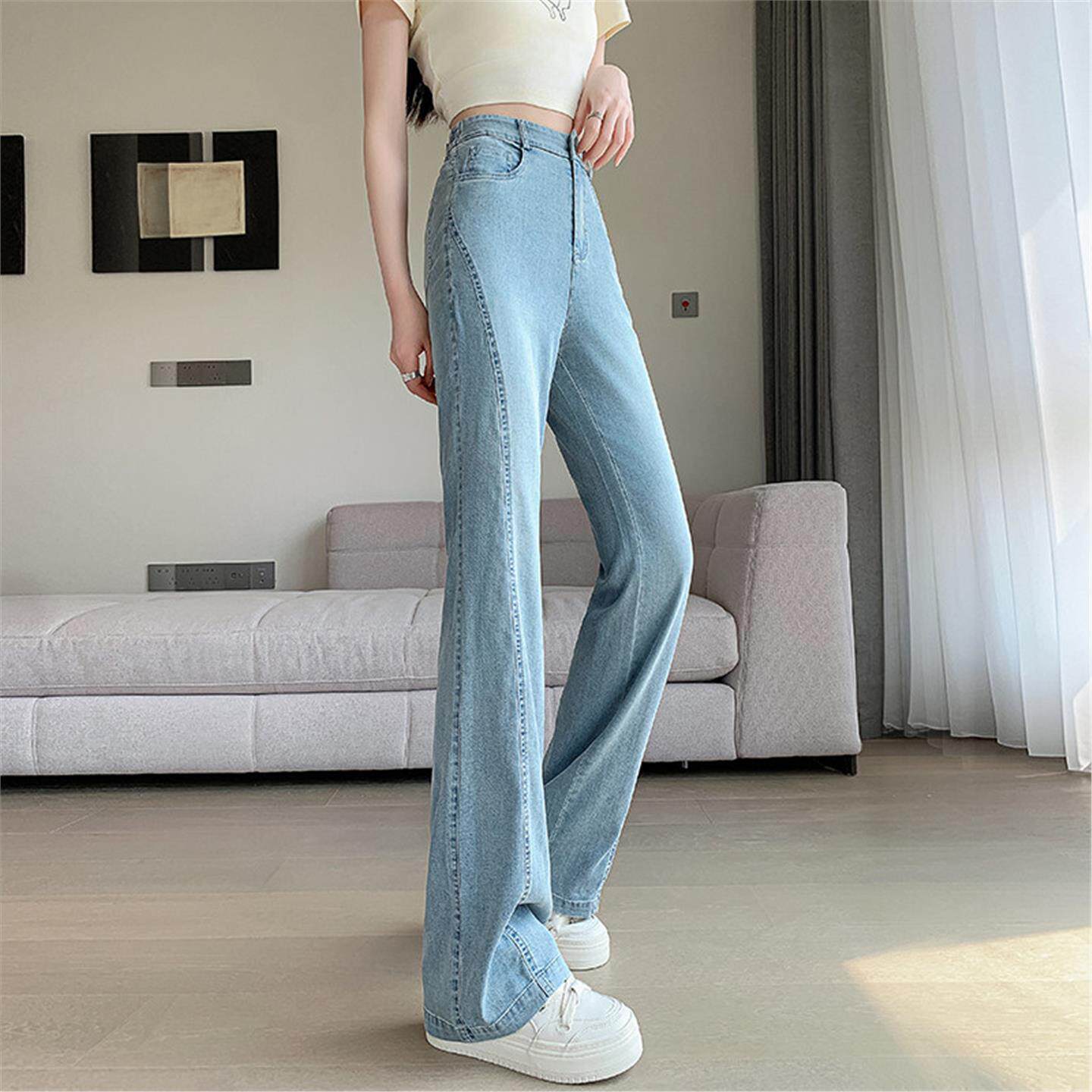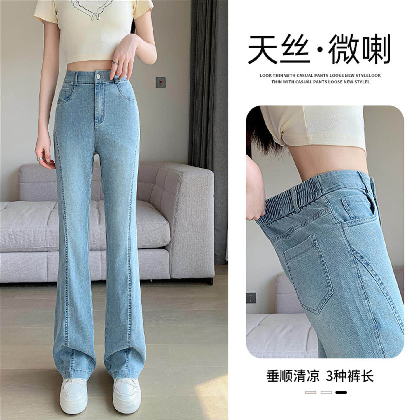 高腰微喇天丝牛仔裤女2026新款夏季薄款小个子复古显瘦冰丝喇叭裤