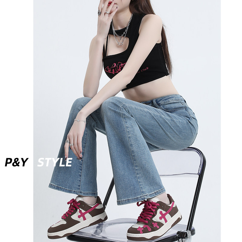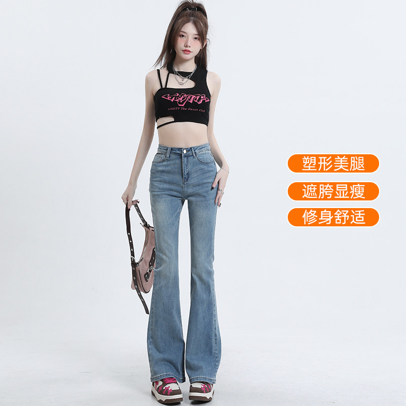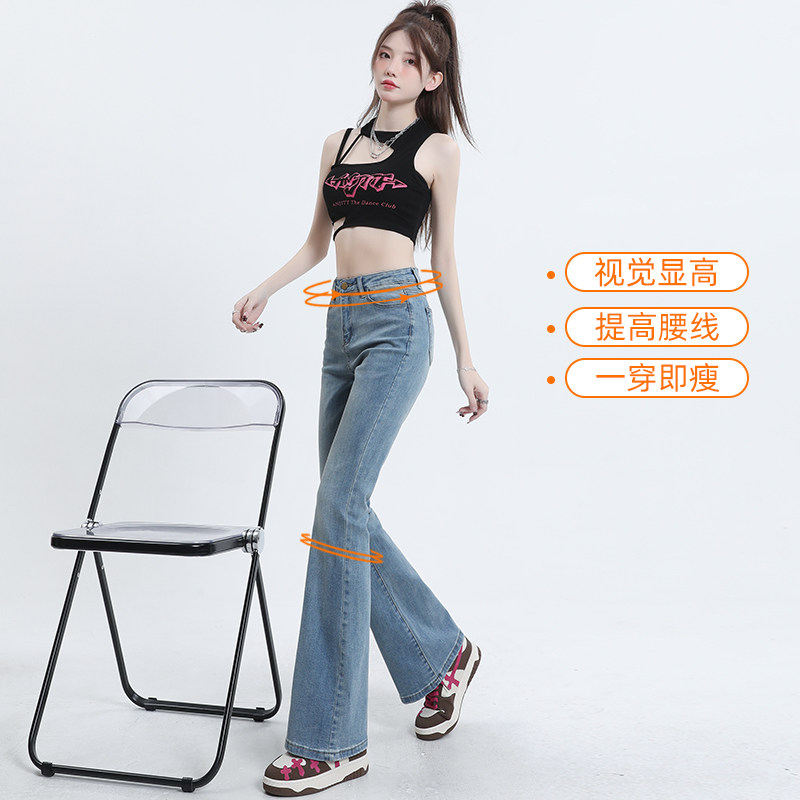 高腰微喇牛仔裤女2026新款夏季薄款复古修身马蹄裤美式高街拖地裤