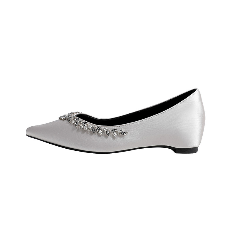 真皮~骄屿法式水钻尖头内增高单鞋女2025新款浅口配裙子玛丽珍鞋