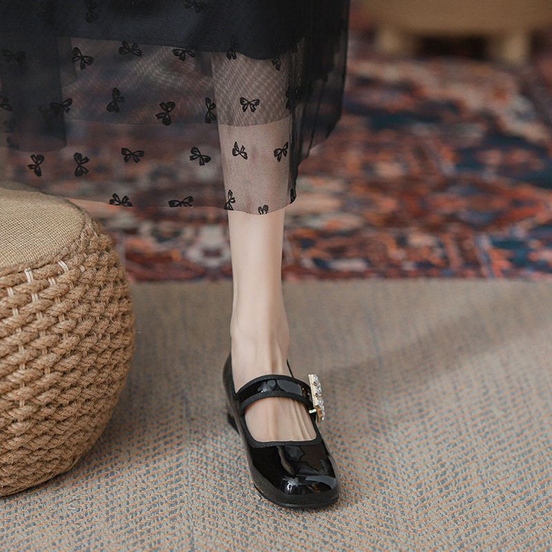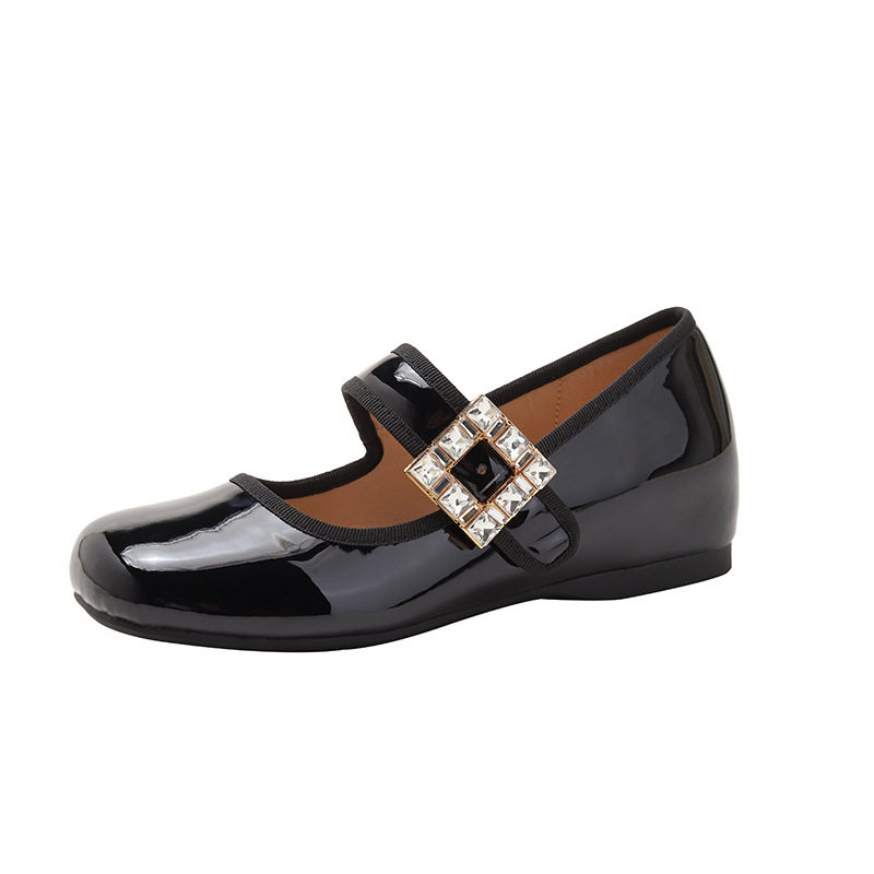 内增高法式玛丽珍鞋2024年新款春款一字带水钻复古方头软底鞋女