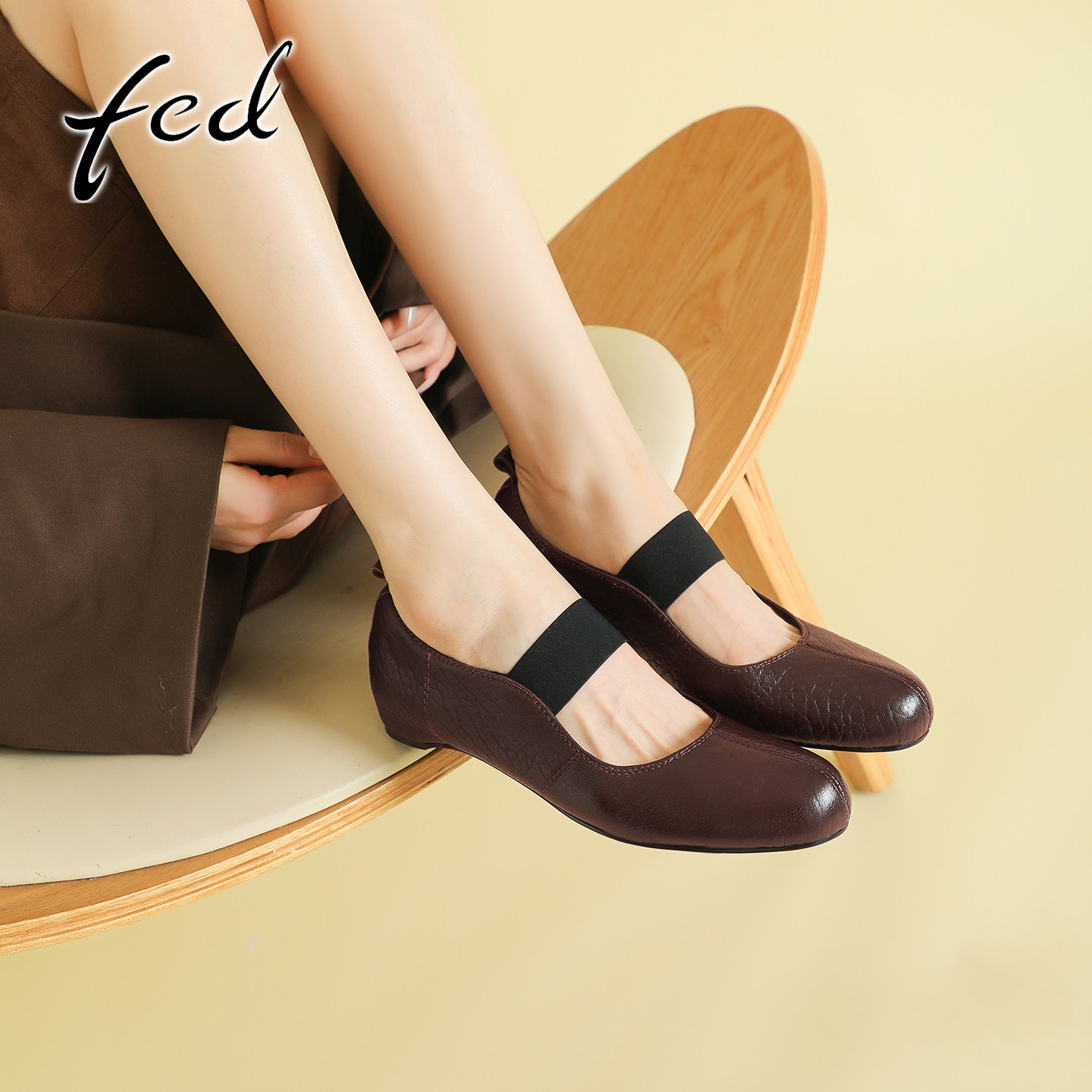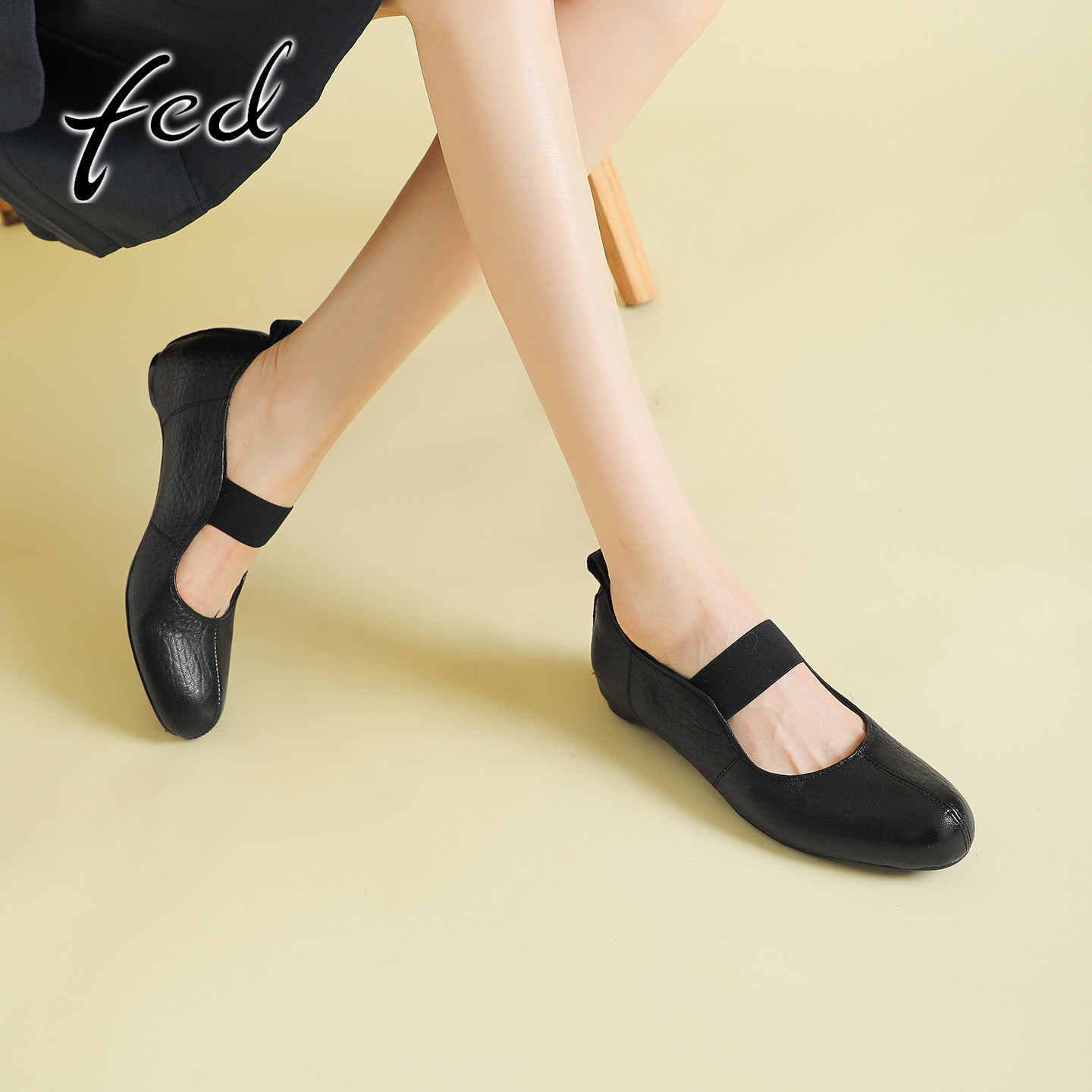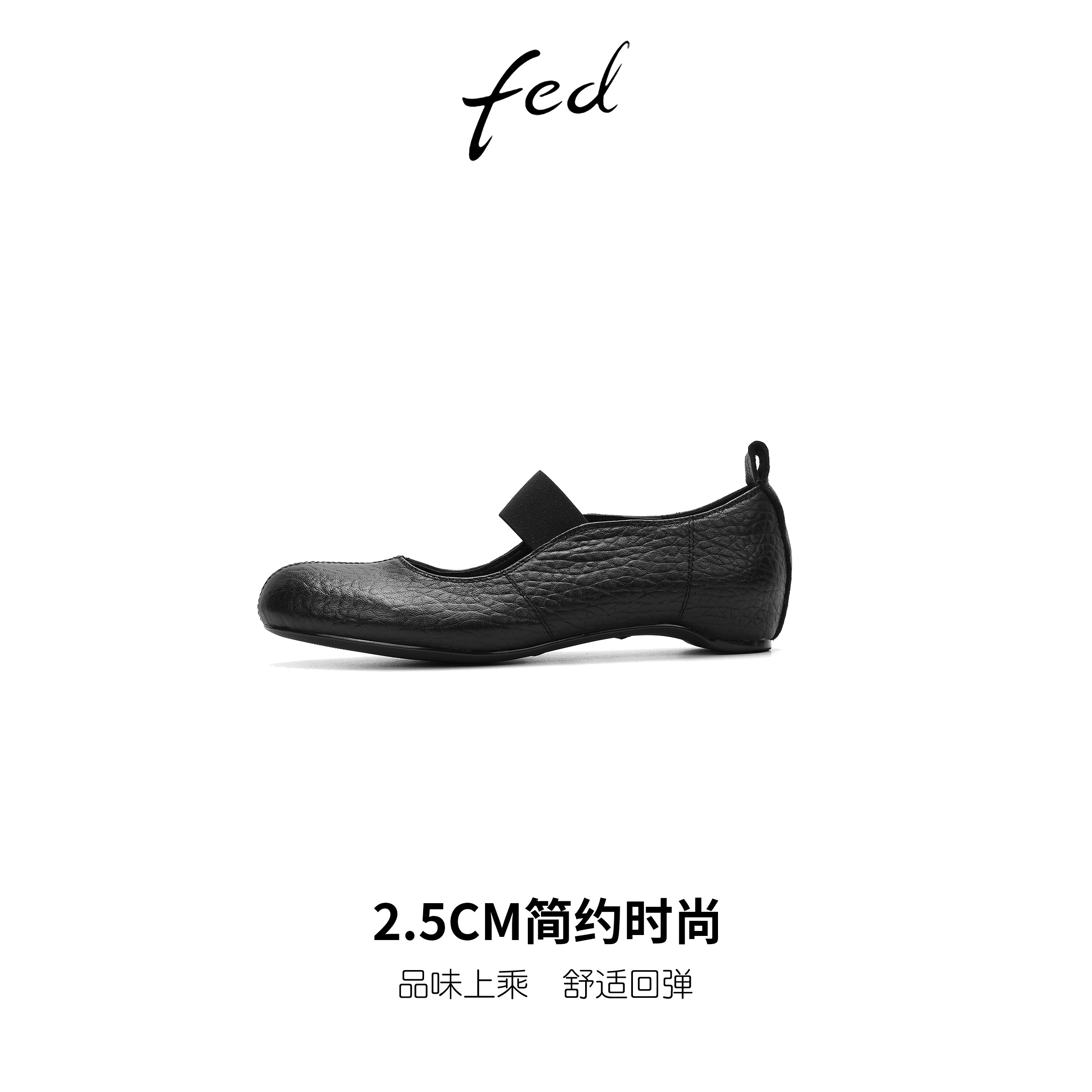 fed法式复古软羊皮玛丽珍鞋女春季新款一字带内增高圆头浅口单鞋
