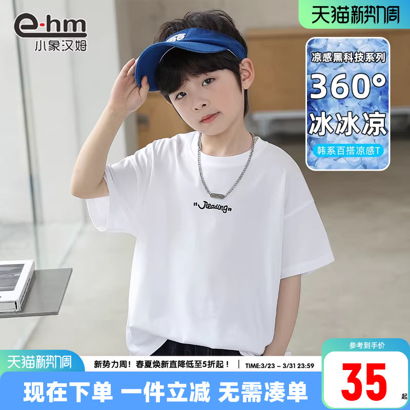 小象汉姆童装男童短袖t恤凉感2026新款冰爽运动休闲上衣儿童夏装