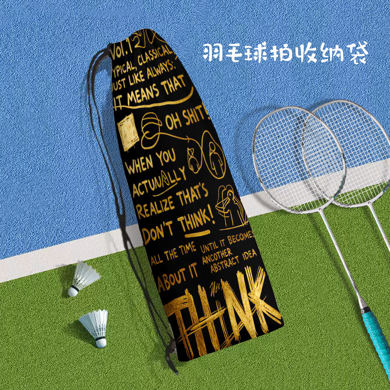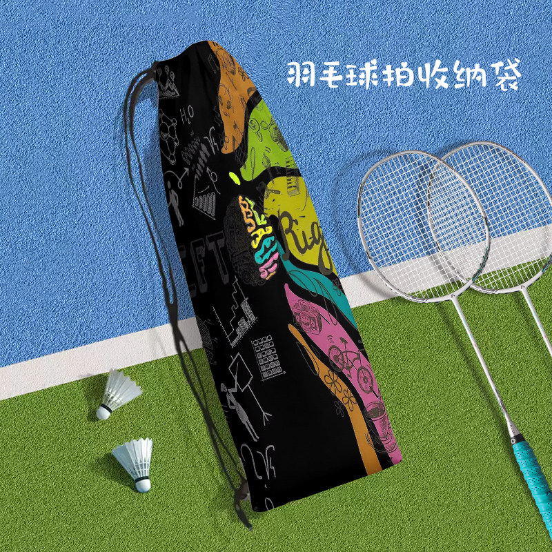 美式复古涂鸦便携式羽毛球拍收纳袋定制潮流个性文字运动束口包