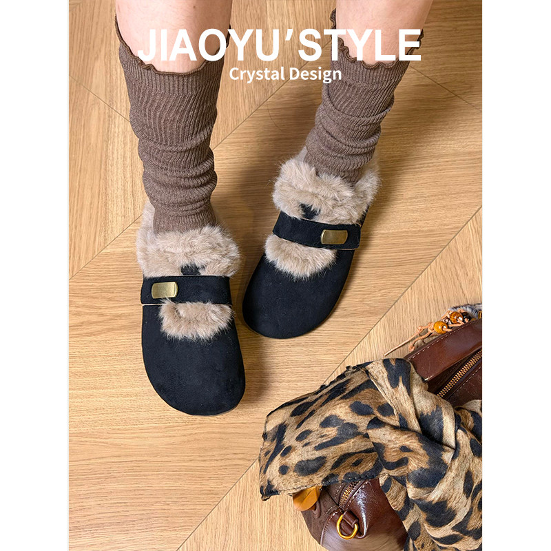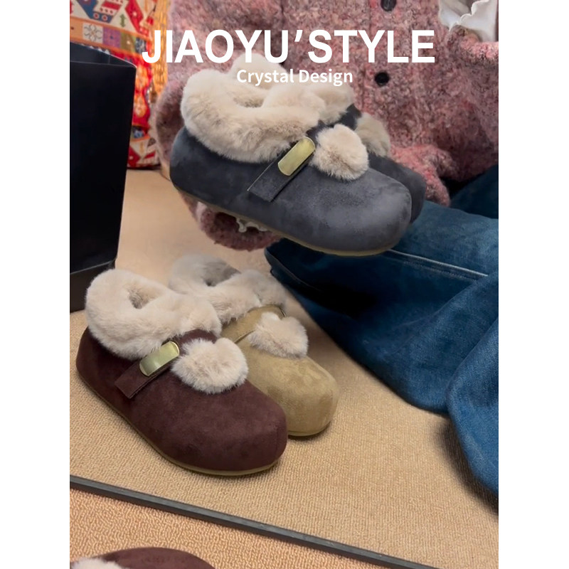 真皮~骄屿内增高加绒勃肯毛毛玛丽珍鞋女2025新款魔术贴雪地棉鞋