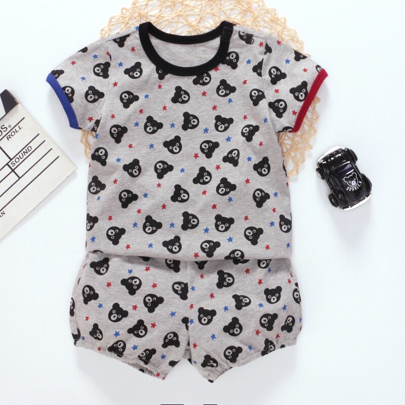 日系童装夏季新款男女童宝宝小熊印花短袖T恤短裤套装两件套