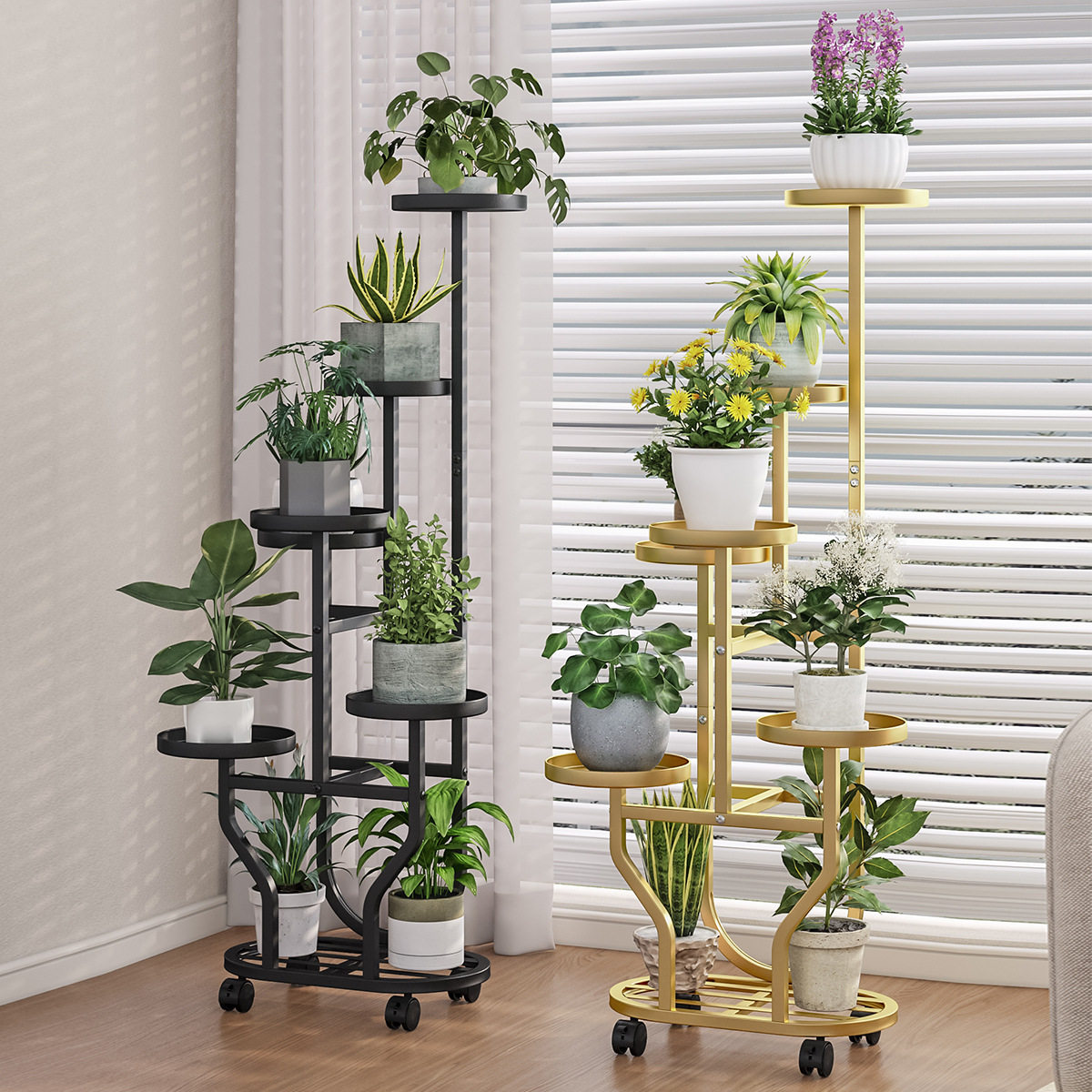 花架子客厅落地式阳台置物架户外庭院多肉铁艺花盆托架带滚轮层架