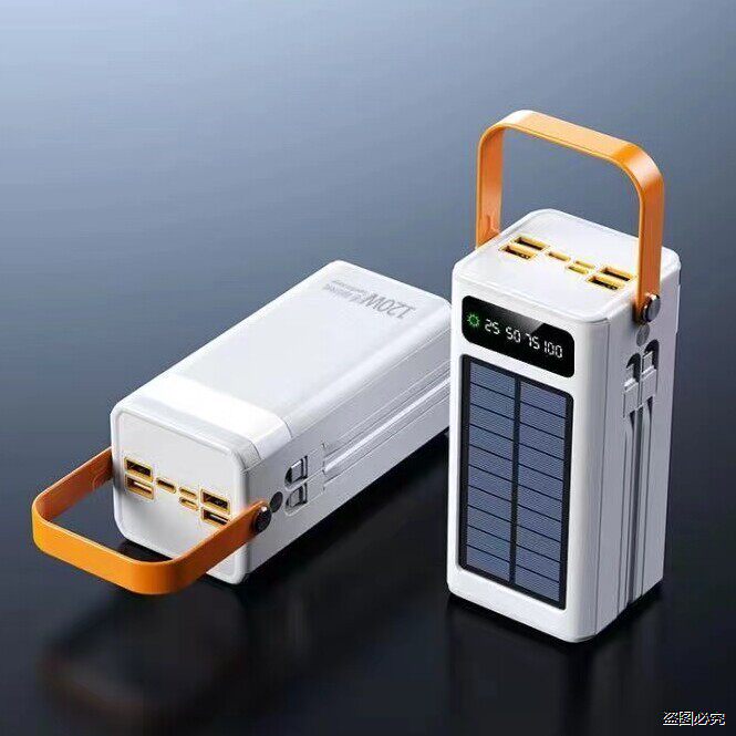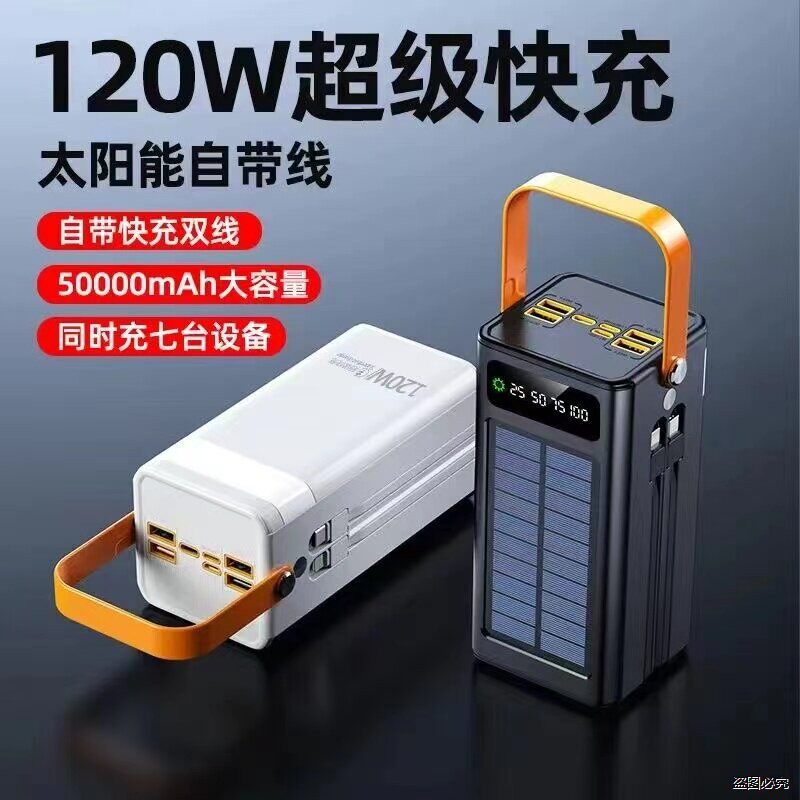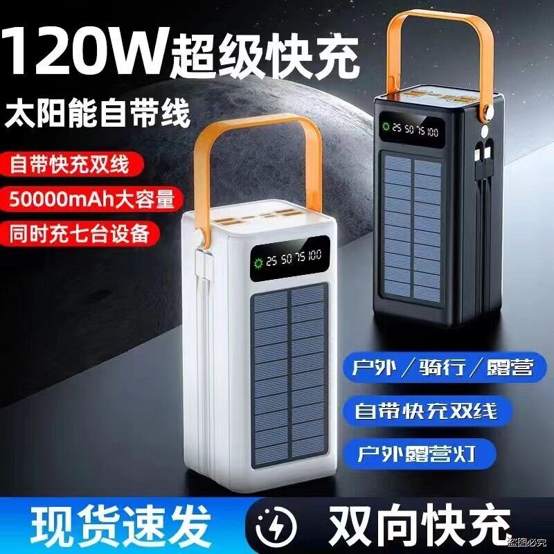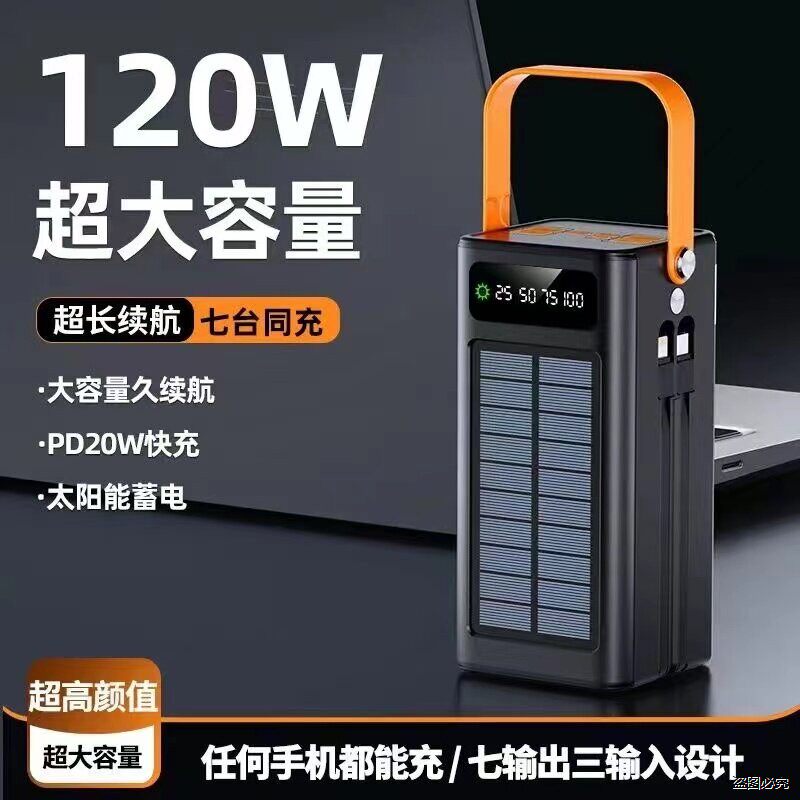 自带线太阳能充电宝超大容量120000毫安骑行直播户外超级快充120W