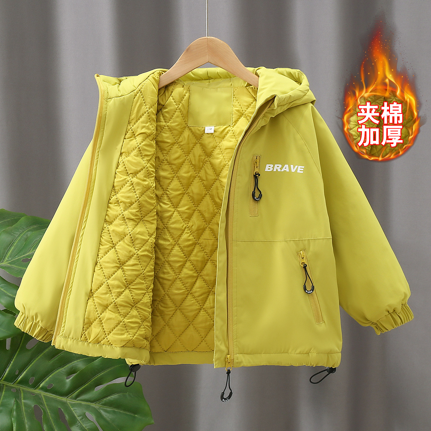 男童夹棉冲锋衣2026新款秋装儿童韩版棉服外套男女童冬装加厚风衣