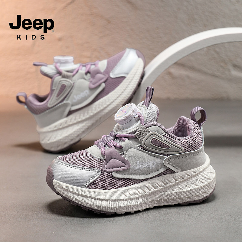 jeep女童鞋中大童轻便软底跑步鞋男童纽扣鞋透气儿童鞋子春秋运动
