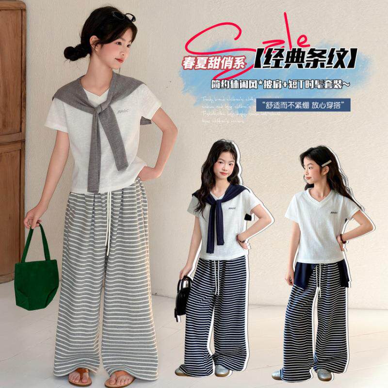 女童夏装套装2026新款儿童衣服洋气超好看韩系穿搭夏季阔腿裤两件
