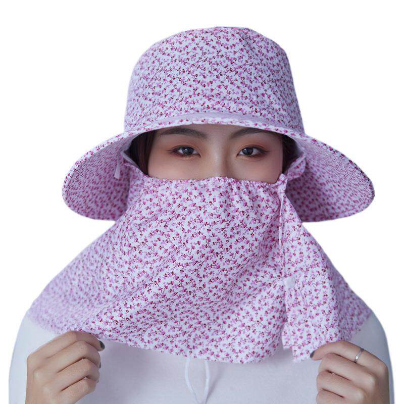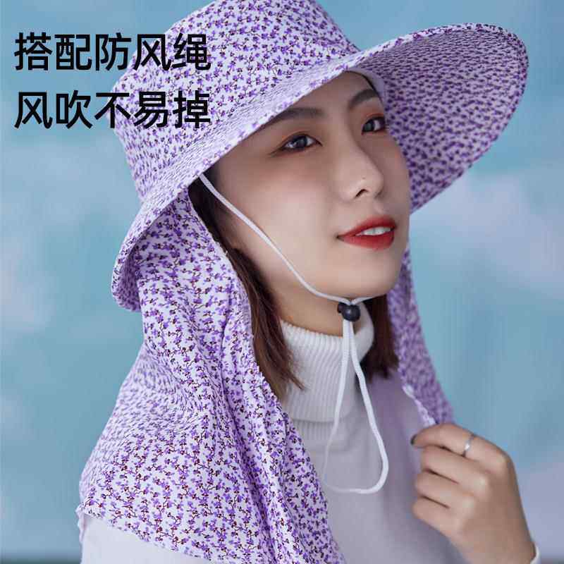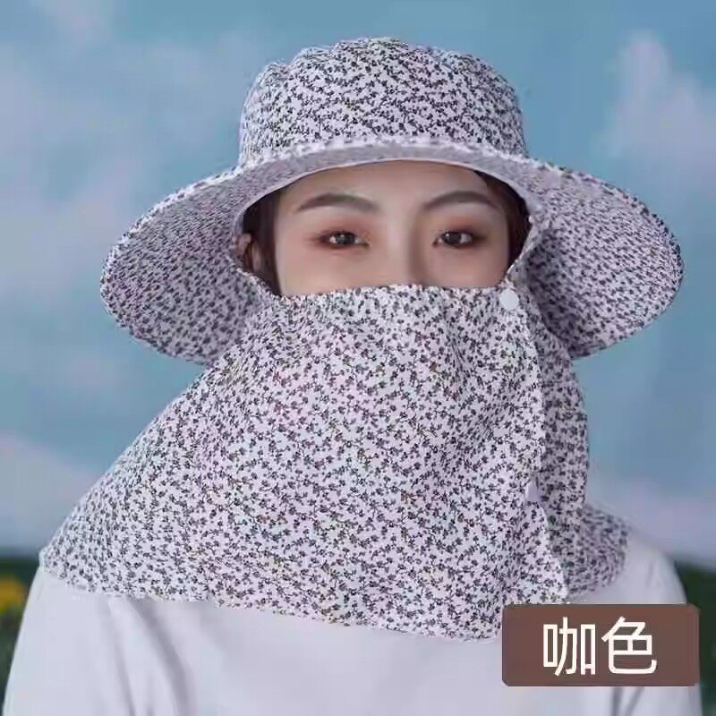 采茶下地干农活渔夫帽女防晒遮阳防尘面罩帽子一体护颈护脖太阳帽